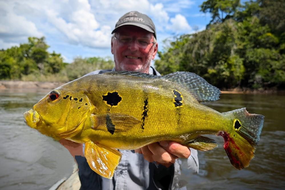 Hard vechtende 'Yellow' en 'Lake' peacock bass zijn twee van de taaiste en gemeenste baarssoorten die in het amazone regenwoud voor komen. Deze verbazingwekkende roofdieren kunnen worden gevangen op middelgrote walk-the-dog kunstaas zoals spooks en skitter walks, kleine poppers, propbaits en op jigs, vliegen en minnow baits. Ze verpletteren oppervlakte kunstaas met overgave en er gaat niets boven de aanbeet van een Peacock die je kunstaas laat exploderen aan de oppervlakte. De grotere 'Yellows' kunnen meer dan 17 pond wegen.
