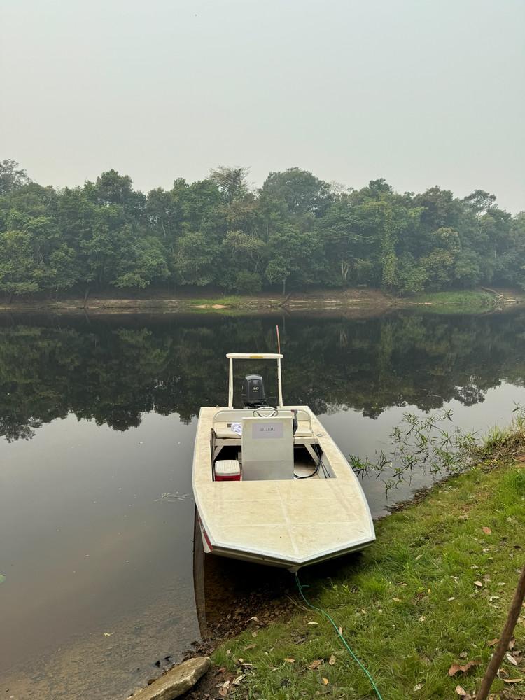 Op deze locatie wordt gebruik gemaakt van verschillende soorten visboten. Dat zijn platbodems en lokale visboten van rond de 16 voet en deze worden gevaren door lokale gidsen. Omdat de arapaima enorm schuchtere vissen zijn, wordt tijdens het vissen de buitenboormotor uitgezet en enkel met de peddel gevaren. Zodoende worden de vissen minder afgeschrikt en zijn de kansen om ze te vangen veel groter.
