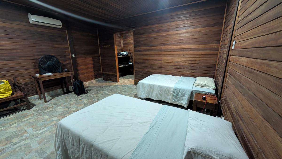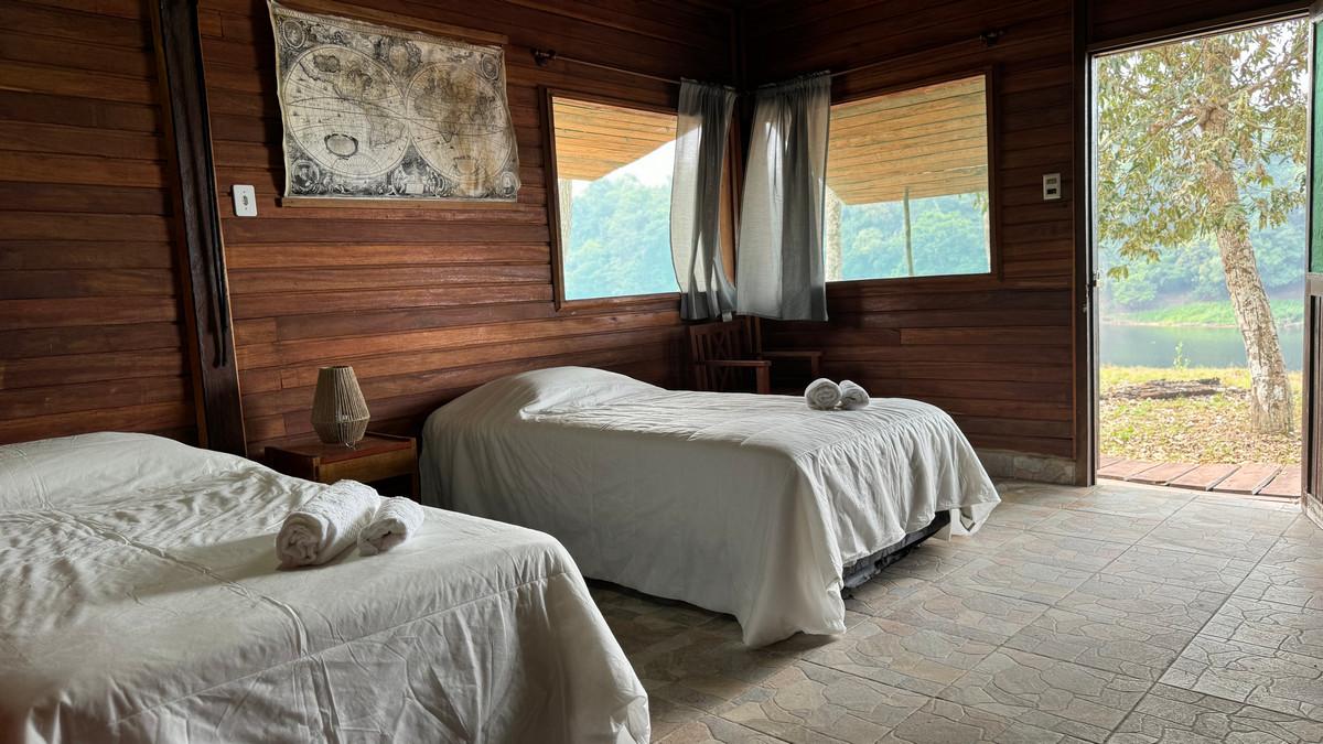 Ervaar de authentieke charme van de Boliviaanse jungle in onze rustieke maar comfortabele lodge. Vier privéchalets met airconditioning, twee eenpersoonsbedden en een eigen badkamer bieden een gezellig toevluchtsoord na een dag op het water. Kom samen met medereizigers in de gemeenschappelijke ruimte om verhalen te delen, van een drankje te genieten en de sfeer op te snuiven. Onze chef-kok bereidt elke dag verse, heerlijke maaltijden – zodat u weer vol energie aan uw volgende avontuur kunt beginnen en herinneringen kunt creëren die u uw hele leven bijblijven.