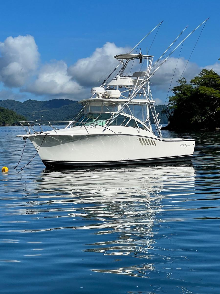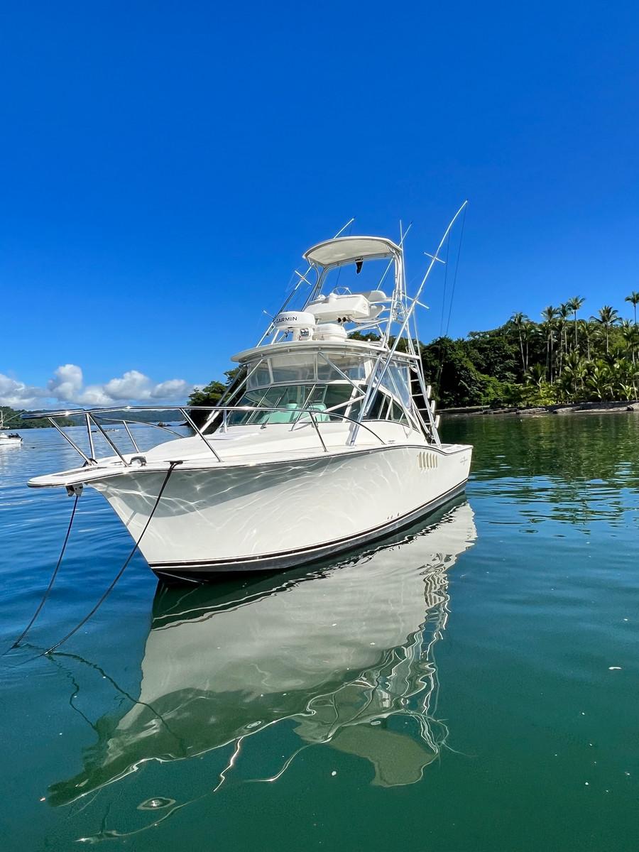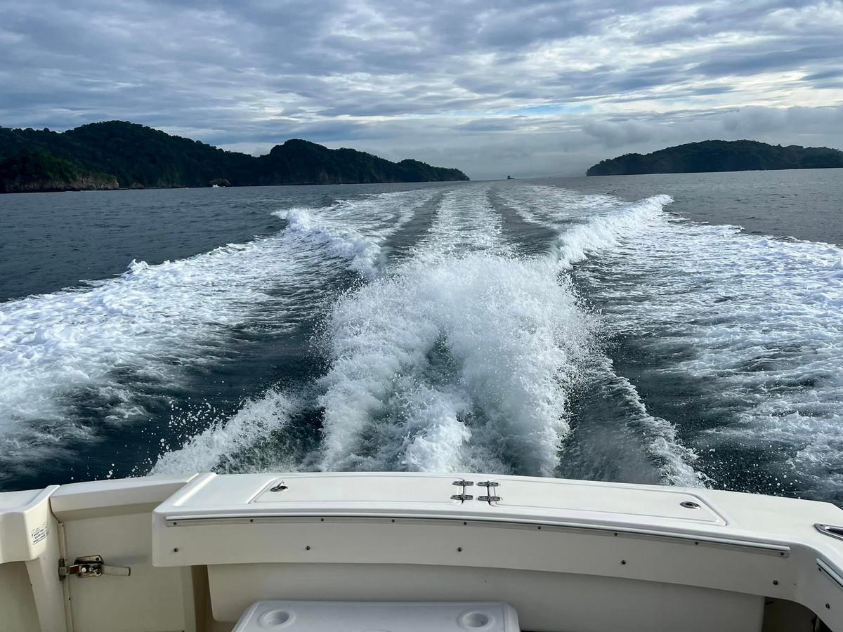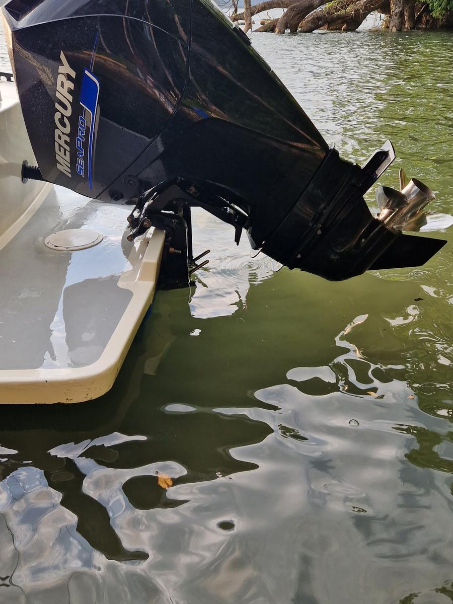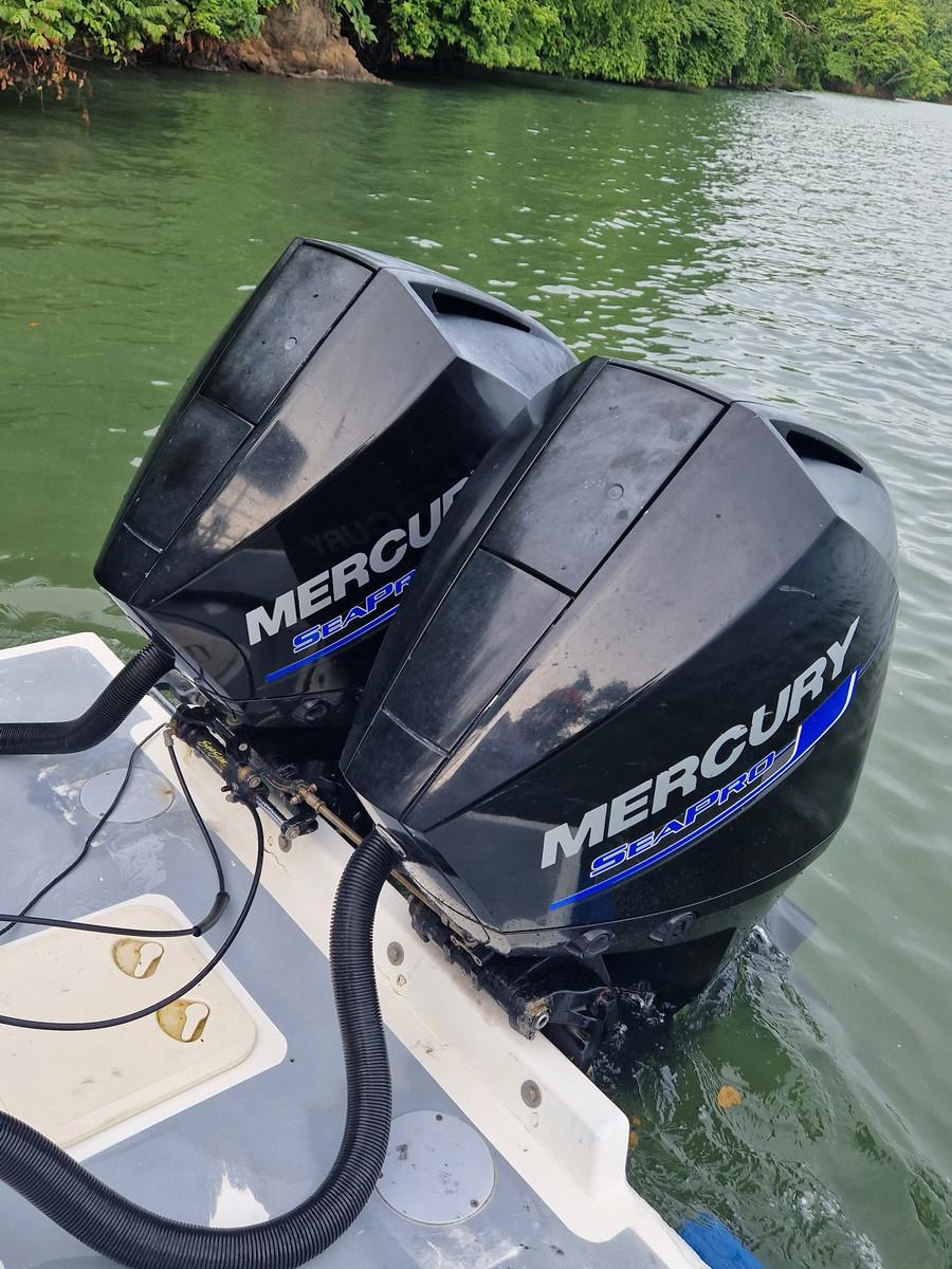 De tweede boot is de Conquistador en is ook voorzien van alle benodigdheden en voldoet aan de veiligheidsnormen. Met twee maal 250 PK Mercury saltwater motoren ben je snel op de plek van bestemming. Met een kleine 10 meter beidt deze boot dan ook net iets meer ruimte dan de Mono Congo en kunnen 3 a 4 personen hier prima op vissen.