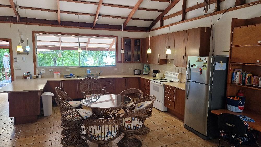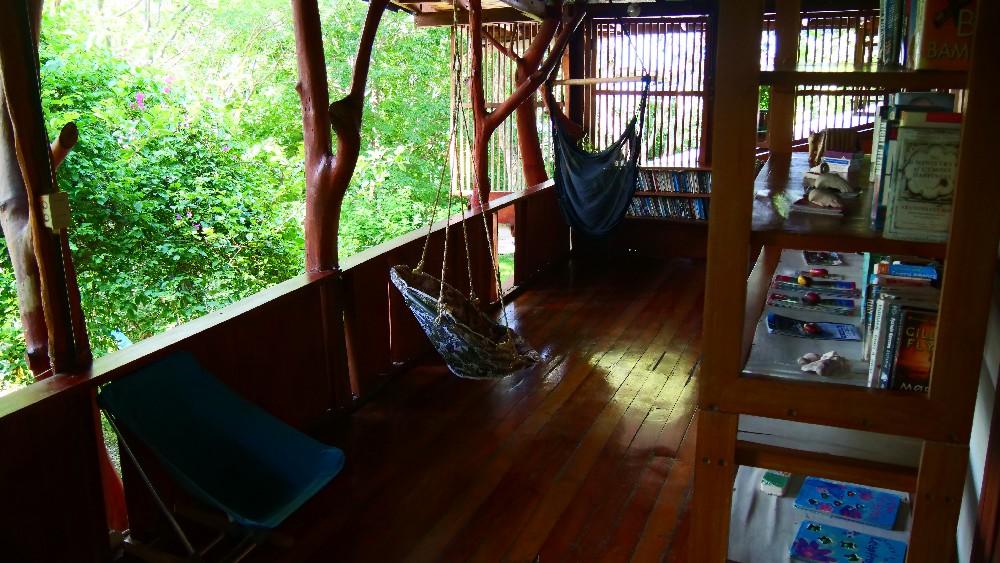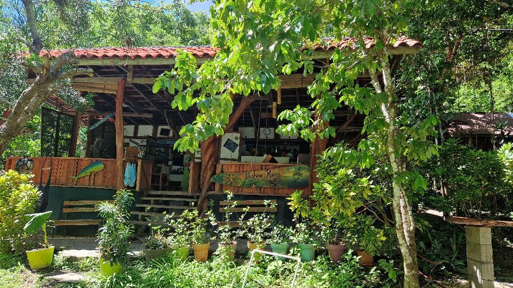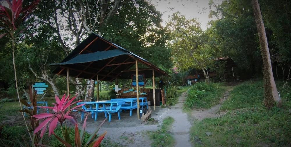 Naast de kamers is er een gemeenschapsruimte waar ook de maaltijden geserveerd worden. Daarbij wordt een variëteit aan groenten, fruit, vis en vlees aangeboden en zal het je aan niets ontbreken. Vanaf El Yayo is het ongeveer 250 treden naar deze ruimte en het privé-strand welke omgeven wordt door palmbomen in een uitbundige tuin. In de gemeenschapsruimte wordt er ook gegeten en kan je na een mooie visdag lekker bijkomen in de hangmat of schommelstoel. Ook hier zijn de benodigde faciliteiten en als je wilt kun je hier nog een avondtocht per kayak bijboeken naar bijvoorbeeld de stranden die ’s nachts oplichten (bioluminiscentie); heel mooi! In de tuinen en in de baai komen veel vogels, amfibieën en ook apen voor; in de omgeving zwerven groepen brulapen, die hoor je al snel. Er zijn hier nog steeds meer apen dan mensen in dit gebied. De natuur is hier zo mooi dat op het vlakbij gelegen Isla Tortuga de filmopnames voor Jurrasic Park zijn opgenomen.