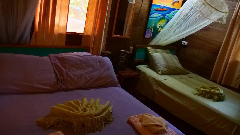 El Yayo: Het grote houten huis waarin je verblijft beschikt over 3 grote kamers en ligt op de rand van een heuvel aan de rand van de jungle. Op de eerste verdieping zijn 2 kamers en er is nog 1 kamer op de begane grond. De kamers zijn groot genoeg voor 2 tot 3 personen en beschikken over heet water in de gezamenlijke douche voorziening. Er is ook een keuken voor de liefhebbers met een koelkast en kookstel. Verder zijn alle kamers voorzien van ventilatoren.