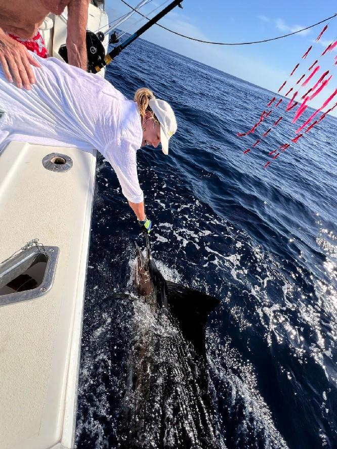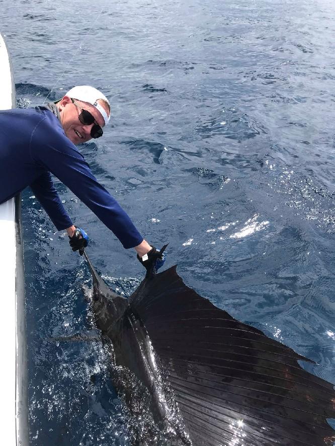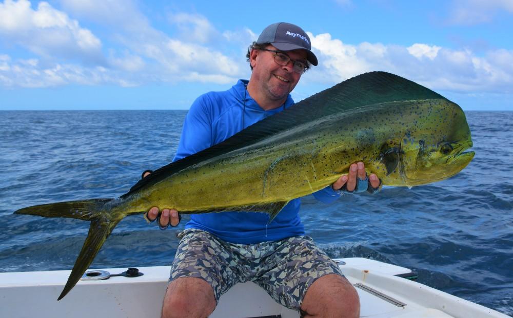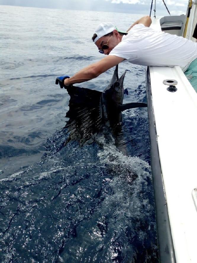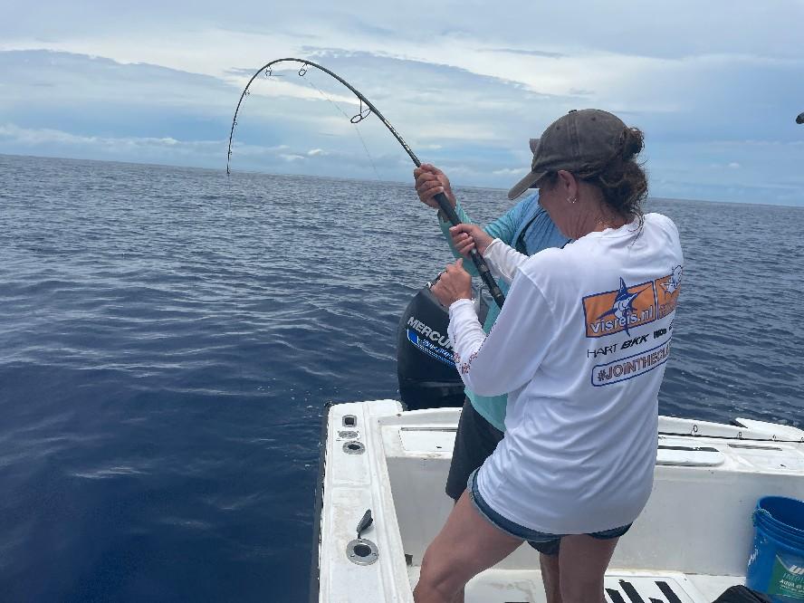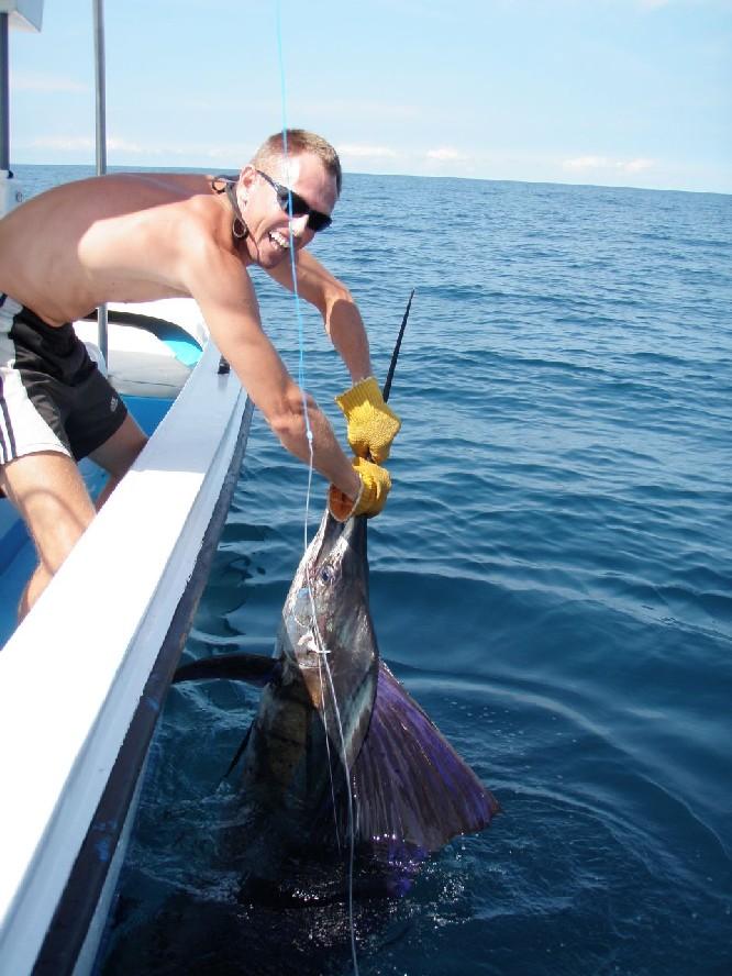 Op ongeveer 45 minuten varen zit je ook direct in het off shore gebied waar je vist op dorado, wahoo, marlijn, sailfish etc. De sailfish worden gevangen vanaf 100 lbs en zijn eerder groter dan kleiner. Deze visserij vindt plaats met behulp van (grote) lures en ander kunstaas wat allemaal ter plaatse is.