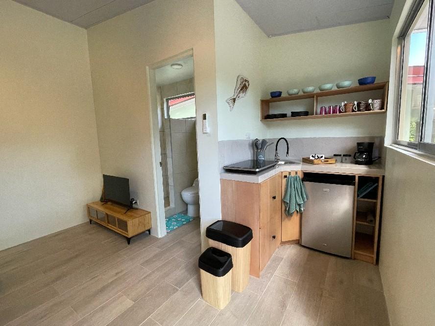 El Bambu: is een kleine accommodatie voor maximaal 2 personen. Er is een slaapkamer met een dubbelbed een aparte douche en kleine keuken en een terras. Het is niet groot maar is een prima verblijf voor een koppel.