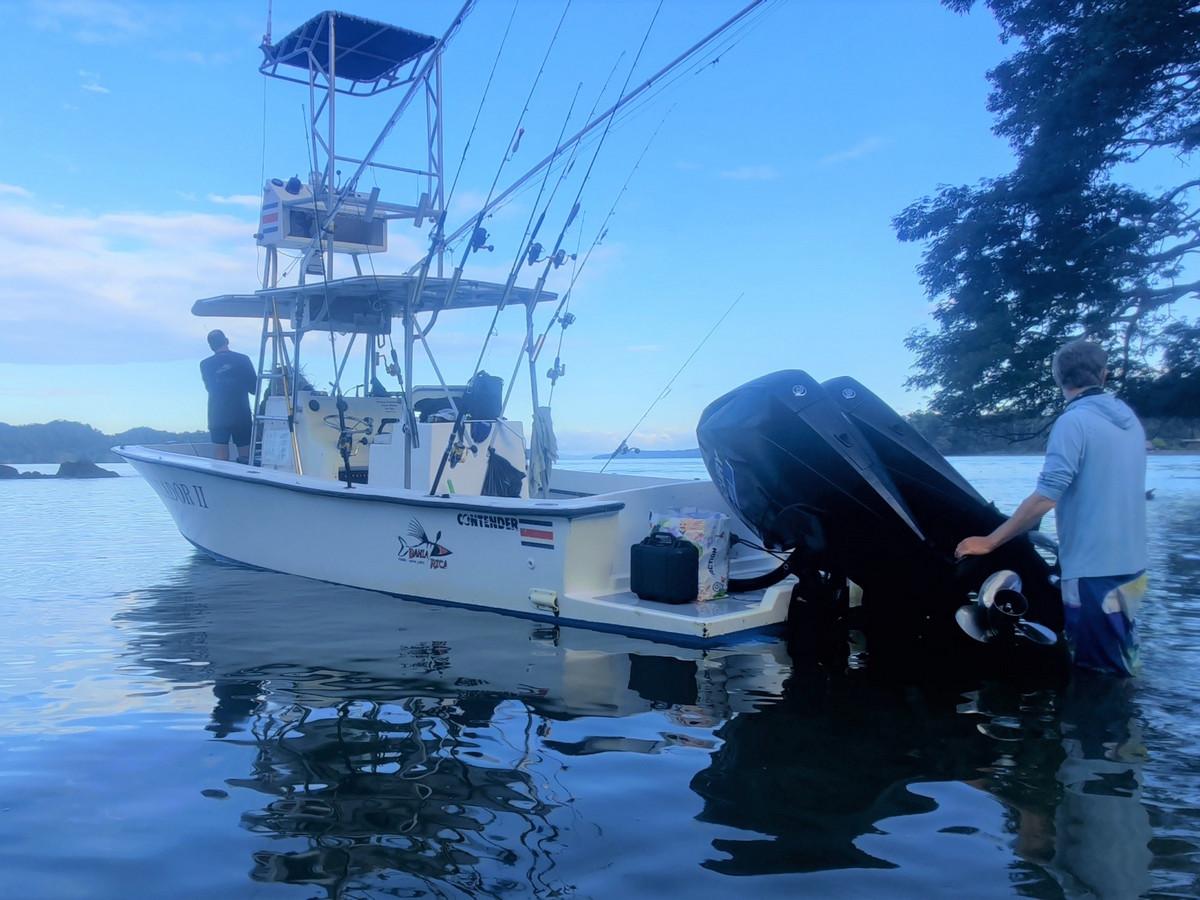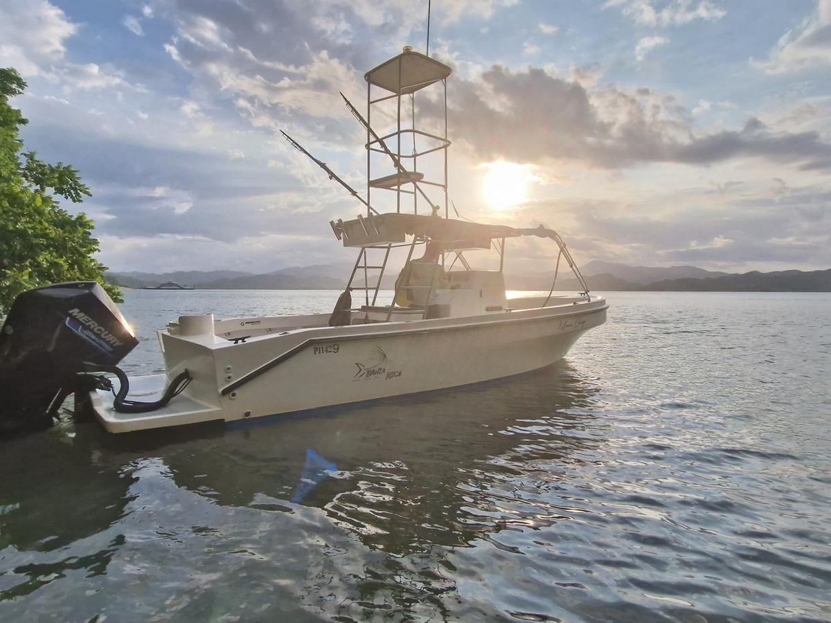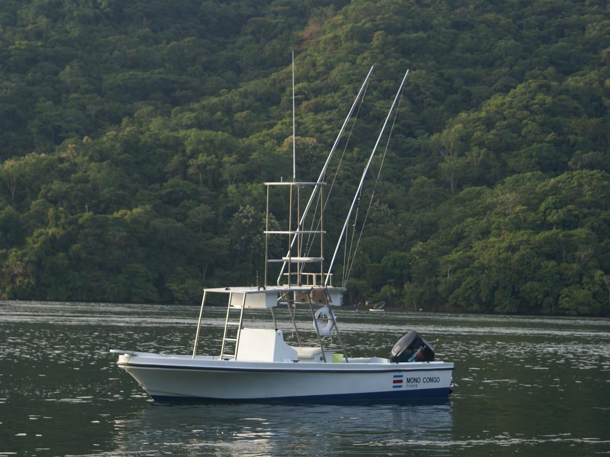 Ter plaatse zijn er drie boten die gebruikt kunnen worden. Deze dienen op voorhand gereserveerd te worden. De Mono Congo is 8,5 meter lang en beschikt over een 150 pk 4 takt motor die je comfortabel op de gewenste locatie brengt. Hij is van het type walk around, volledig ingericht op vissen en biedt plaats aan maximaal vier vissers en heeft een uitkijk om scholen vis makkelijker op te sporen. Voor 2 tot 3 personen is dit een perfecte visboot.