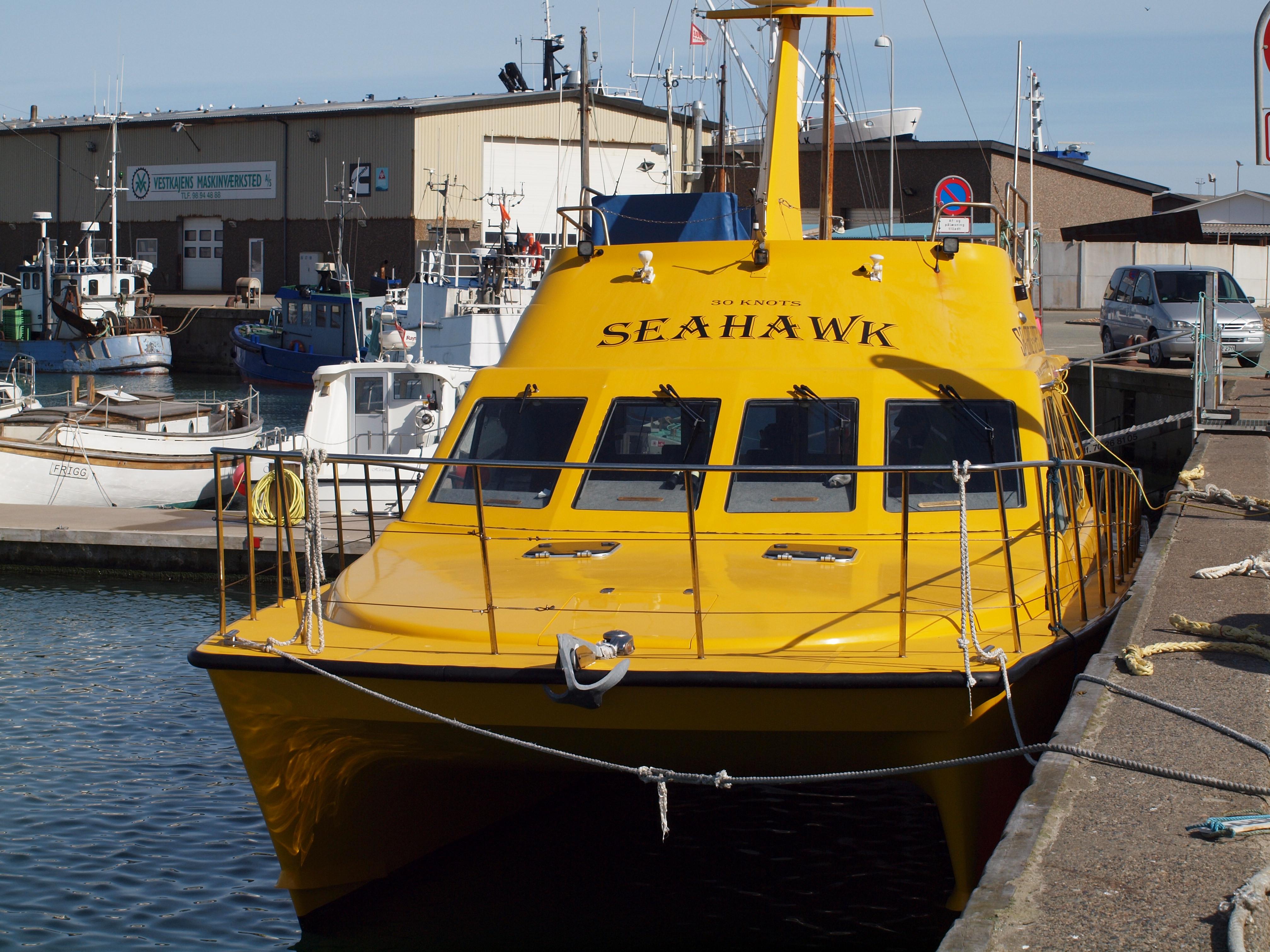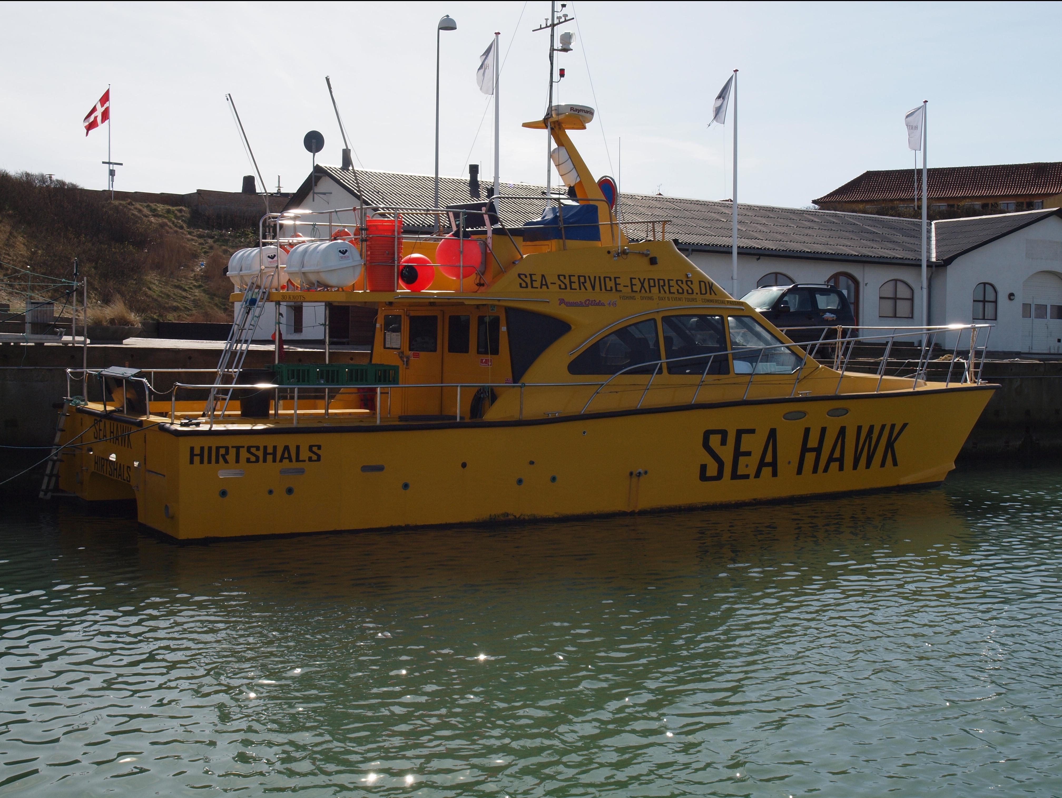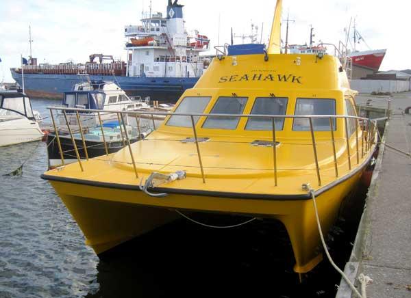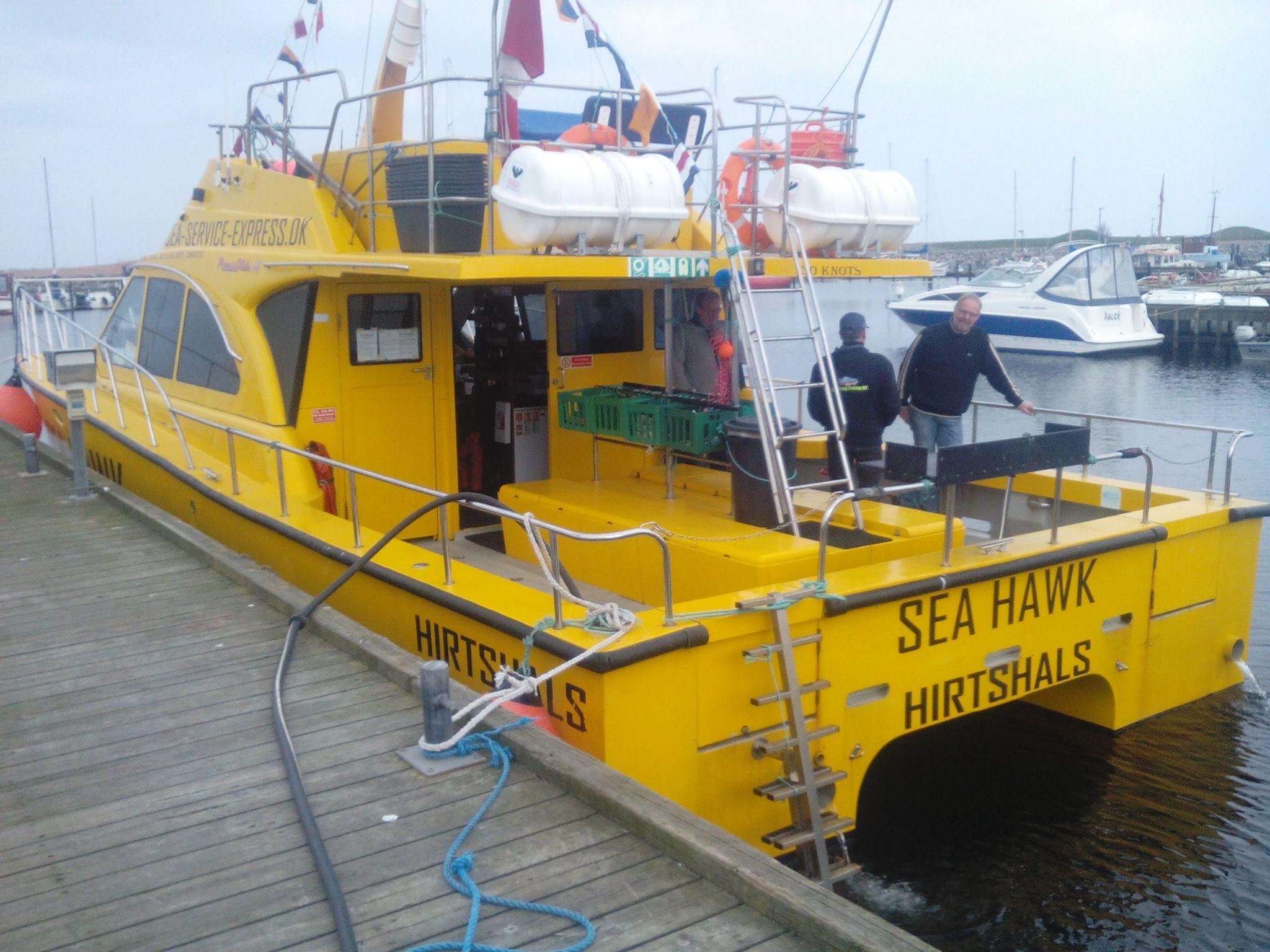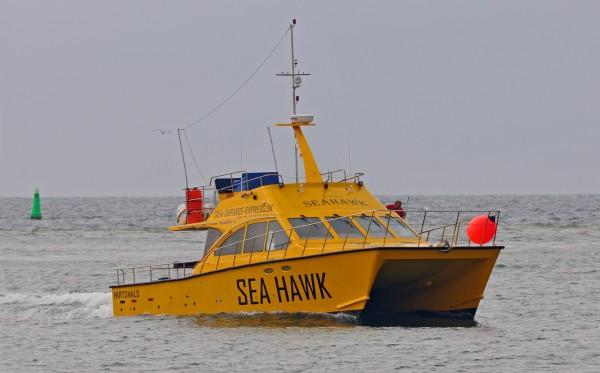 De Sea Hawk is een catamaran opgebouwd uit glasfiber. Hij is in 2012 gebouwd in Engeland en beschikt over een flybridge en een vaarvergunning A2. Dat betekent dat deze visboot tot maar liefst 150 zeemijl uit de kust mag varen. Door de opbouw als catamaran is het een zeer comfortabele visboot die praktisch geen last heeft van de deining en perfecte vaareigenschappen kent. Het achterdek is zeer ruim en voor maximaal 12 vissers perfect. Daarnaast is er ook nog een grote binnenruimte waar zitplek is voor alle vissers. De twee 450 pk diesel motoren maken het ook nog eens een snel schip met een kruissnelheid van 20 knopen. De boot beschikt over alle benodigde veiligheidsmaterialen als reddingsvesten en -vlotten en een EHBO kit. Verder zijn er nog 2 hummingbirds 1198 sidescanners/kaartplotters, 2 Raymarine kaartplotters en een Max Sea plotter, 1 x 4 Kw Radar, marifoon en VHF AIS A-Transmitter.