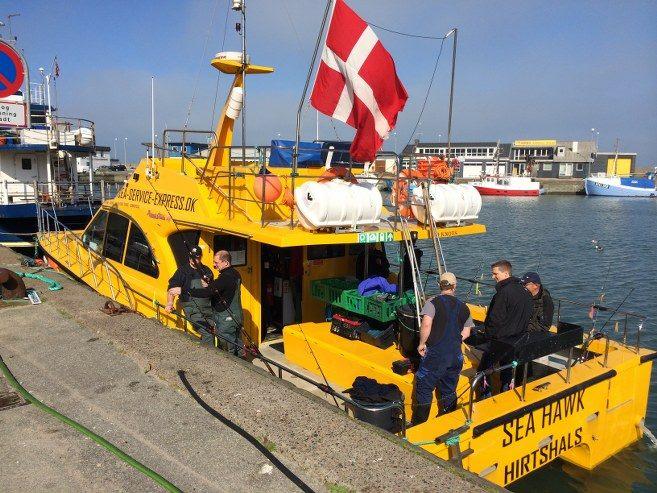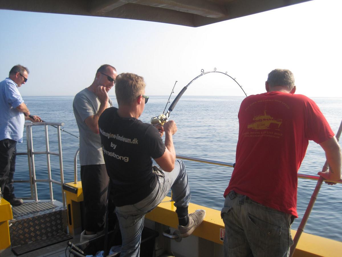 Vanuit Hirtshals varen sportvisboten naar het gele rif en er wordt ook op wrakken gevist. Het gele rif is een begrip en ligt op een aantal mijlen uit de kust voor Denemarken. Hier worden altijd veel en grote vissen gevangen. Denk daarbij aan kabeljauw maar ook , koolvis, leng en sporadisch wordt er ook heek, heilbot en zeewolf gevangen. Het gele rif ligt op zo’n een a anderhalf uur varen en vanuit de omringende dieptes van de Noordzee doemt dit rif op naar 30 tot 60 meter onder de waterspiegel. Een perfecte stek met veel voedsel en dus ook vis.