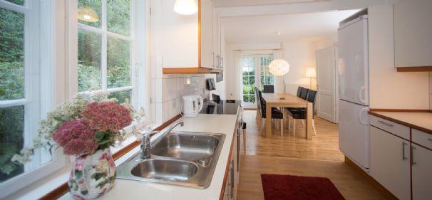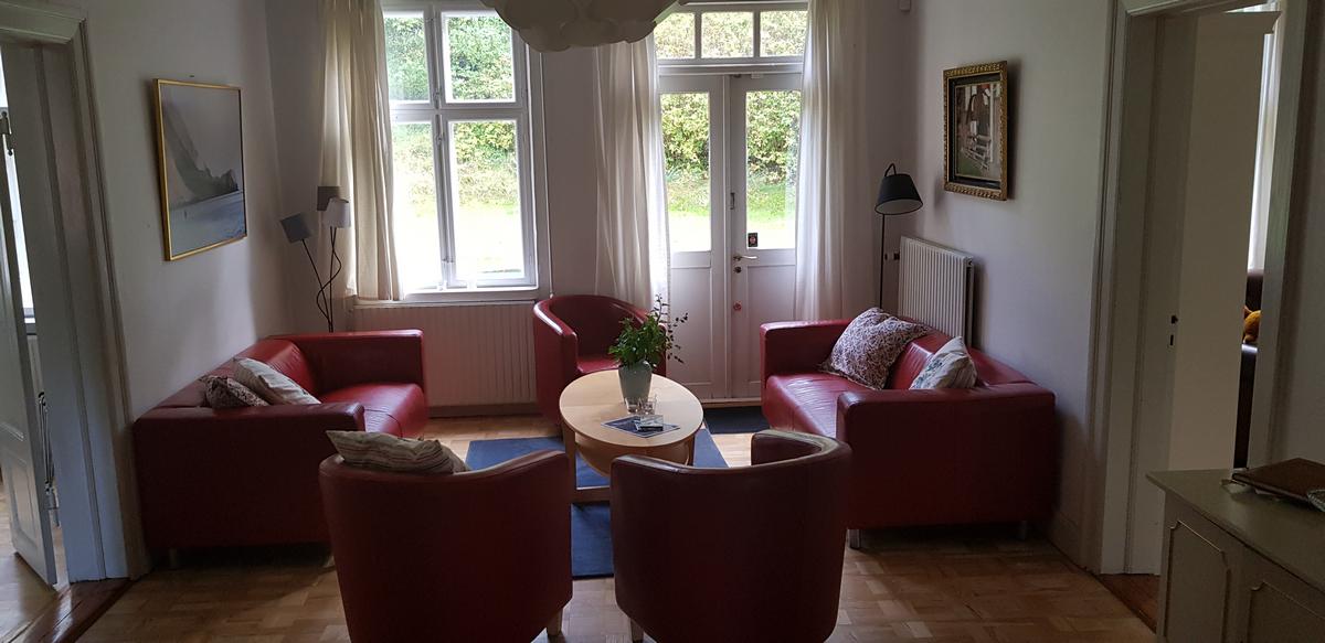 The lodge Dit is een prachtige en statige woning die in 1870 is gebouwd en vlak bij de kliffen van Moen staat. Rust, ruimte en perfect voor vissers! Het staat op 500 meter afstand van de trappen van Gråryg die direct naar het strand afdaalt. De Lodge is ingericht met een moderne grote keuken grenzend aan de eetkamer. In de tuin is er een houtkachel en beschik je verder over een volledig gemeubileerd terras met een prachtig uitzicht naar het westen. Er zijn 2 badkamers met douche en een extra bad in de kelder. Er is een gezellige woonkamer met TV en bank. Op de eerste verdieping zijn er 5 slaapkamers met een tweepersoonsbed en kastruimte. In totaal kunnen er 13 personen slapen. Verder zijn er faciliteiten als fileerplaats, vriezer en stromend water. De woning kan het heel jaar gehuurd worden en wifi, elektra, water, verwarming en hout voor de houtkachel is inbegrepen.