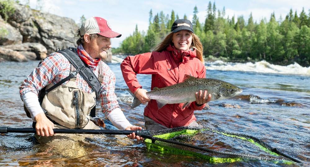 Je hoeft niet veel materiaal mee te nemen. Een spinhengel van 270-300 cm met een werpgewicht tot 30 gram is ideaal, in combinatie met een molentje uit de 2500-4000 reeks met 15/00 gevlochten lijn op de spoel. Daarmee ben je elke forel de baas en kan je mooie afstanden gooien, zelfs als het wat waait. Verder nog een rolletje fluorocarbon 25/00-35/00 en wat kunstaas. Wij behaalden mooie resultaten met de Sandeel Inline van Savage Gear (12.5 cm) en met inline lepels van 21 en 28 gram. Die worden door vele merken gevoerd, onder andere Westin en Zebco. Je kan er een dregje achter monteren, maar beter nog is een grote enkele circlehook (Owner Mutu Light Circle nummer 1 of 2, afhankelijk van het formaat lepel) en de beste optie is een releaseclip+dregje nummer 12 (zie artikel voor adressen)