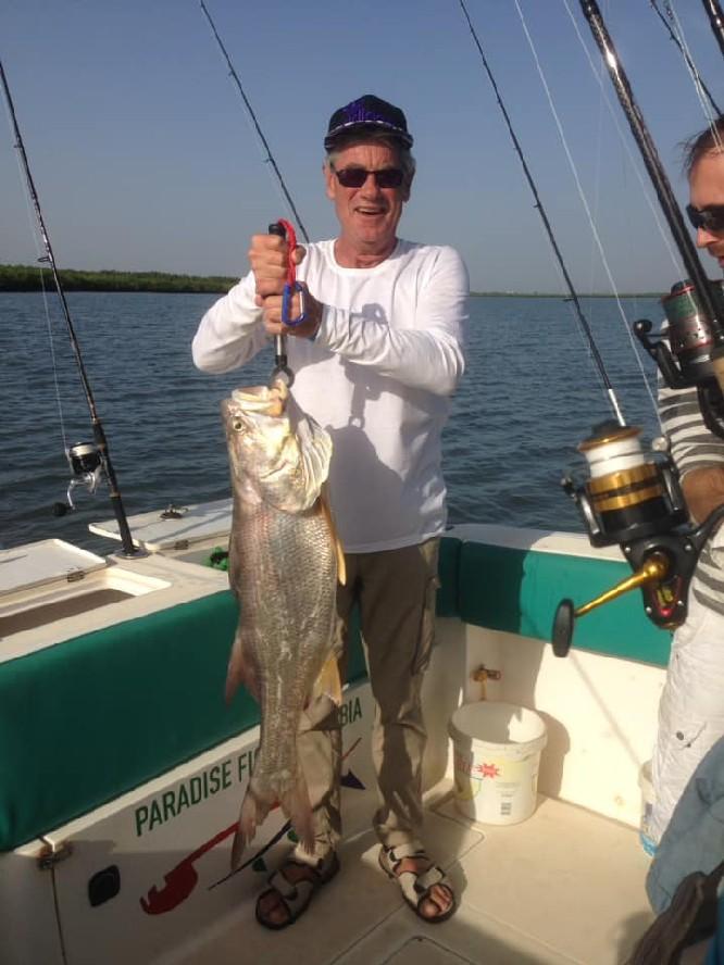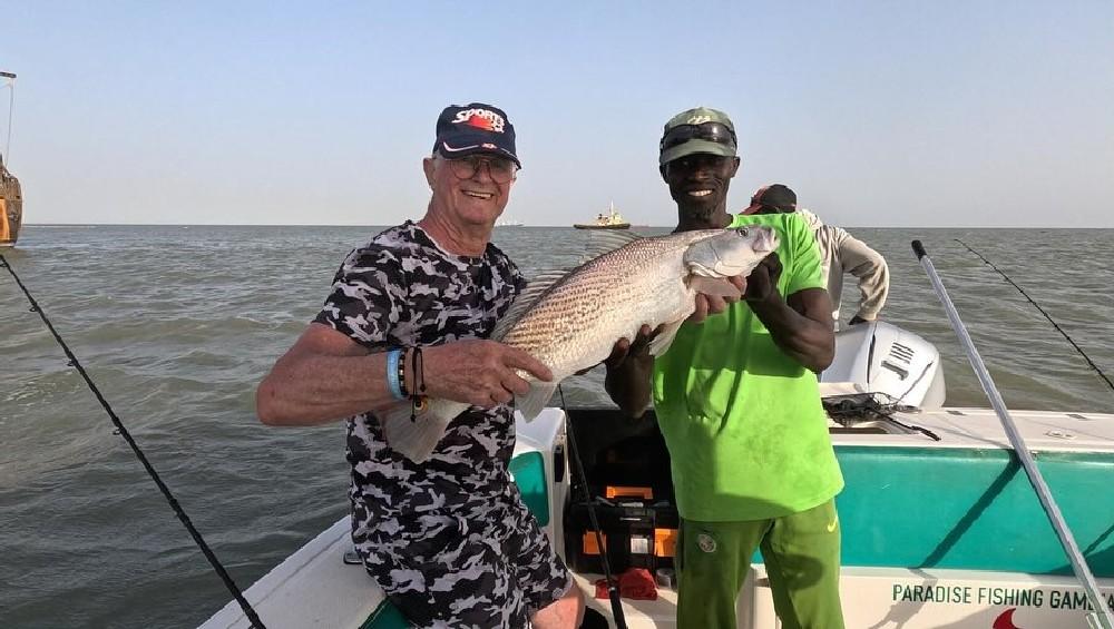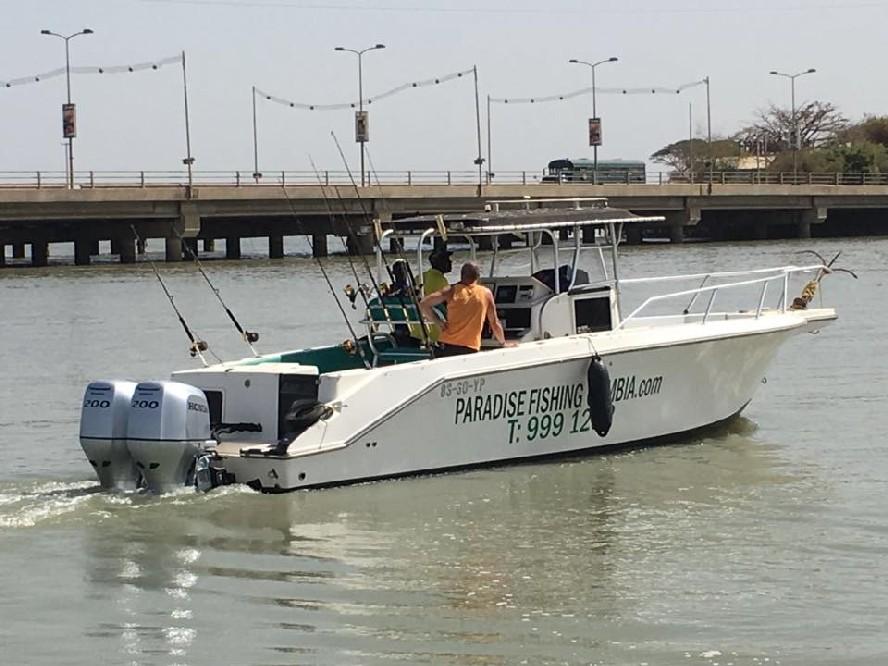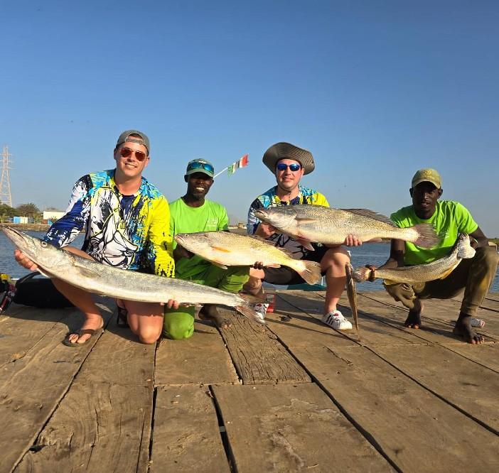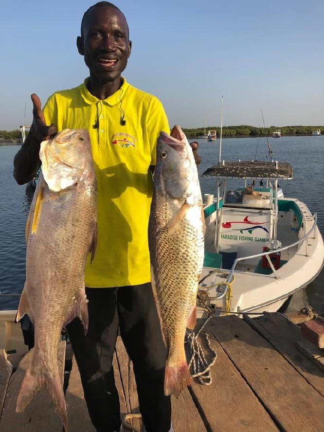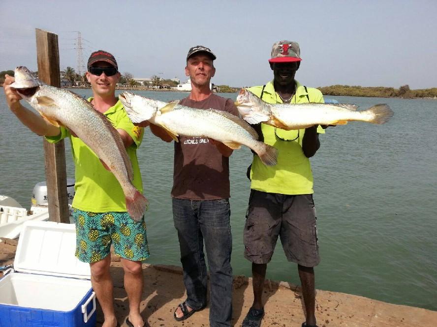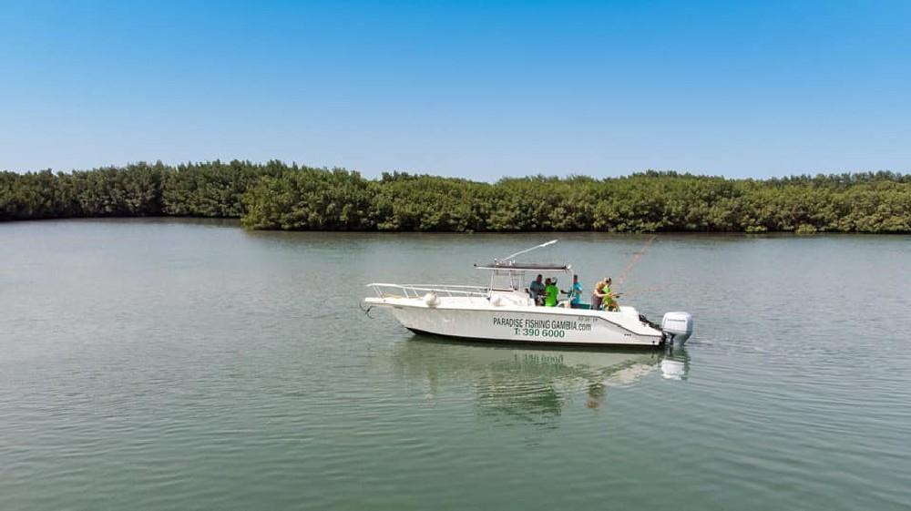 De rivier The Gambia ontspringt in Guinee en stroomt verder door Senegal en mondt uit in zee bij de hoofdstad van Gambia genaamd Banjul. Ondertussen heeft de rivier dan 1125 kilometer afgelegd en is bij de monding ruim 4 kilometer breed geworden. En het is op de scheidslijn tussen zoet en zoutwater bij de monding dat er veel en uitgebreide kreken ontstaan met mangroves die beschutting bieden aan de broedvissen. Maar ook andere obstakels als rotsen en zandbanken maken deze visserij hier zeer interessant. Mede vanwege het feit dat eb en vloed hier voor een flinke stroming zorgen kan je je voorstellen dat zich in deze regio ook grote exemplaren vissen ophouden. Denk daarbij bijvoorbeeld aan barracuda, kapiteinsvis, gitaarrog, stekelrog, catfish, cassave croaker, jack crevalle, pompano, queenfish, tanjurarog en ook de tarpon wordt hier gevangen. Daarnaast kan je ook op open zee (blue water) gericht vissen op dorado en barracuda en als je veel mazzel hebt misschien een zeilvis.