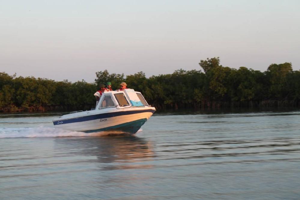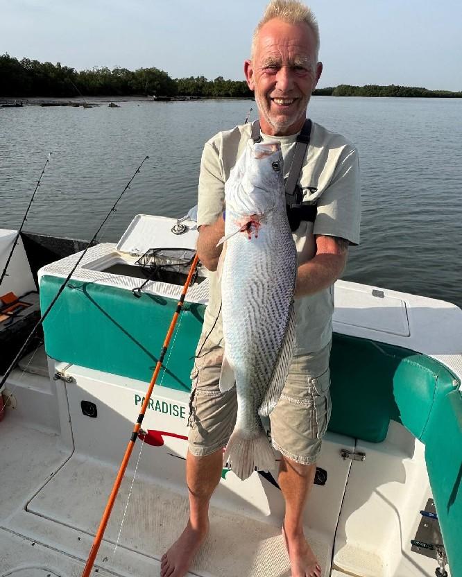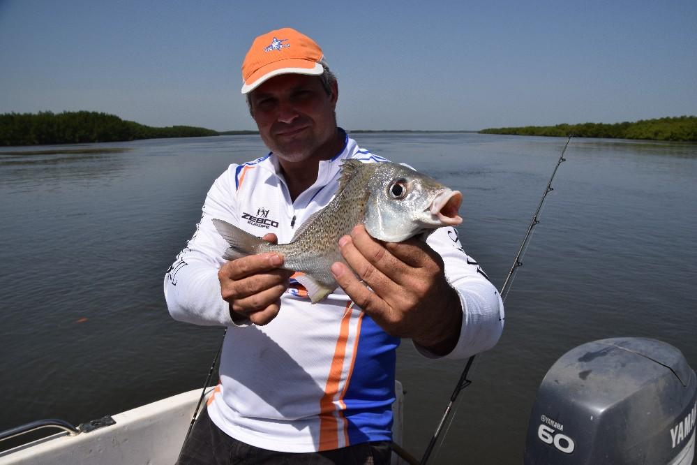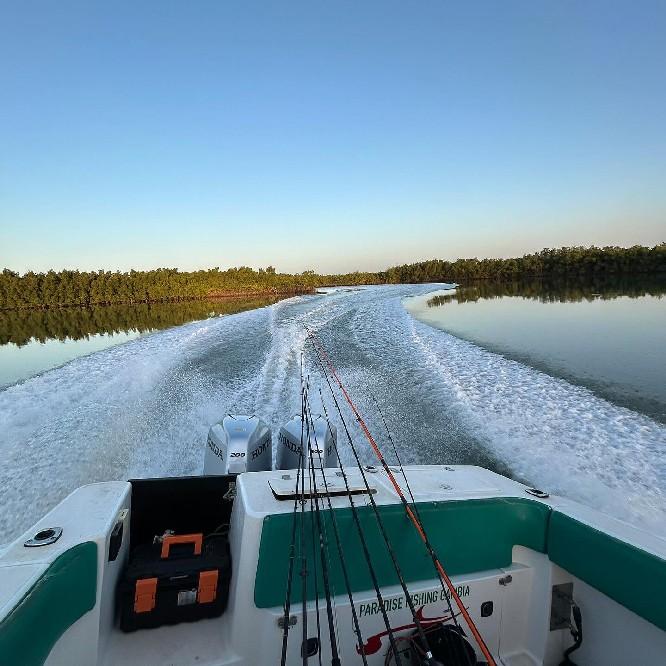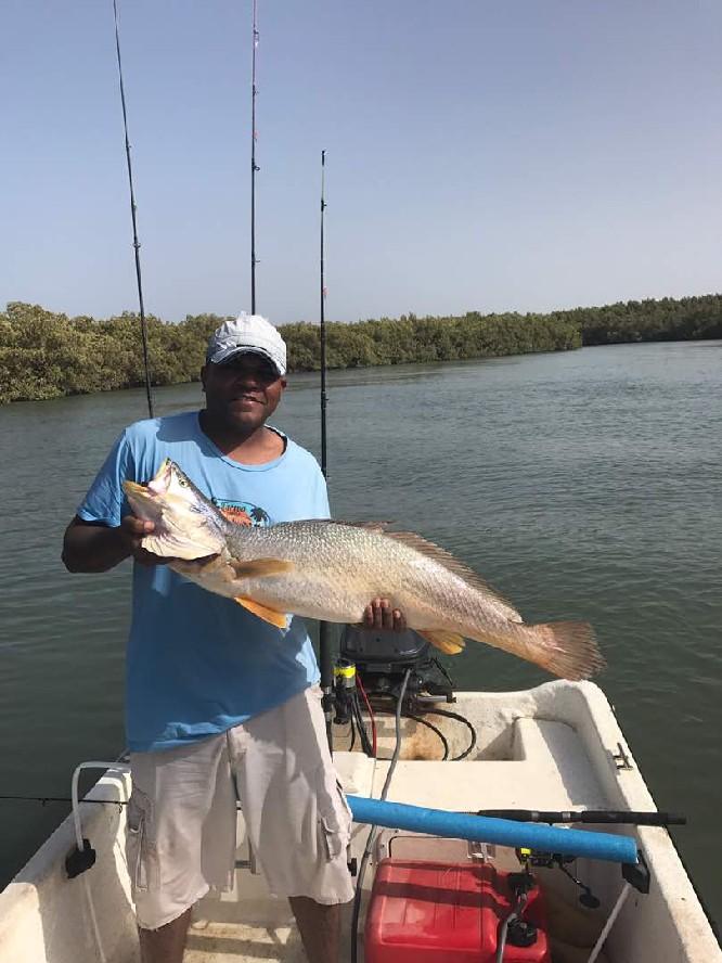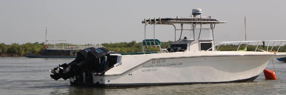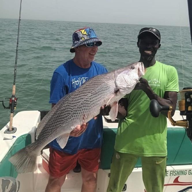 De rivier The Gambia ontspringt in Guinee en stroomt verder door Senegal en mondt uit in zee bij de hoofdstad van Gambia genaamd Banjul. Ondertussen heeft de rivier dan 1125 kilometer afgelegd en is bij de monding ruim 4 kilometer breed geworden. En het is op de scheidslijn tussen zoet en zoutwater bij de monding dat er veel en uitgebreide kreken ontstaan met mangroves die beschutting bieden aan de broedvissen. Maar ook andere obstakels als rotsen en zandbanken maken deze visserij hier zeer interessant. Mede vanwege het feit dat eb en vloed hier voor een flinke stroming zorgen kan je je voorstellen dat zich in deze regio ook grote exemplaren vissen ophouden. Denk daarbij bijvoorbeeld aan barracuda, kapiteinsvis, gitaarrog, stekelrog, catfish, cassave croaker, jack crevalle, pompano, queenfish, tanjurarog en ook de tarpon wordt hier gevangen. Daarnaast kan je ook op open zee (blue water) gericht vissen op dorado en barracuda en als je veel mazzel hebt misschien een zeilvis.