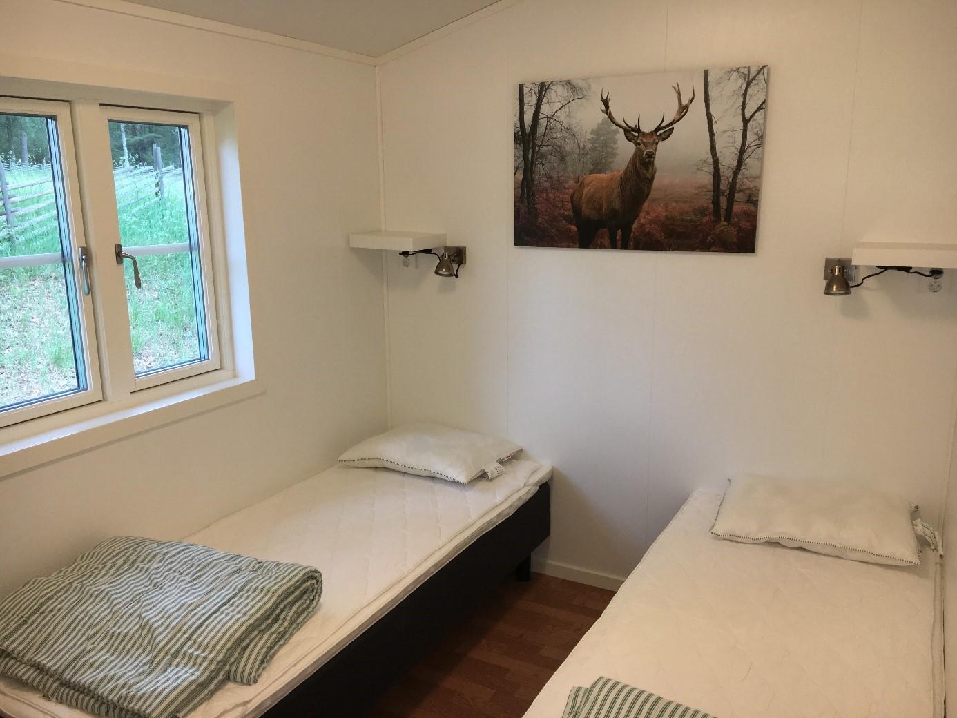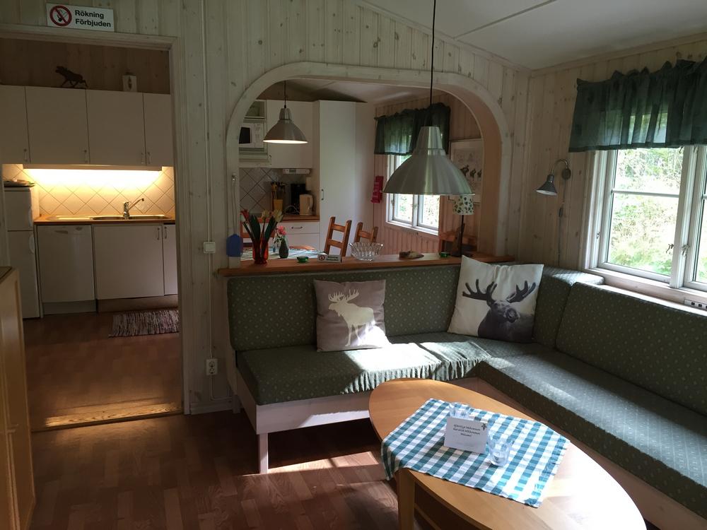 Älgen en Rådjuret Dit zijn typische woningen uit de regio Småland, gesitueerd in een overweldigende setting op slechts 150 meter van de receptie, campwinkel en café. De afstand tot de visboten is ongeveer 300 meter. De woningen hebben een oppervlakte van 40m² en 2 slaapkamers, een keuken en aan afstelruimte. Het zijn moderne en volledig ingerichte woningen met ruime keuken en is geschikt voor maximaal 6 personen. De keuken beschikt over een magnetron, koelkast, vriezer, fornuis, vaatwasser en er is een aparte badkamer met douche en toilet. Het overdekte terras is 12m² met tuinmeubilair en BBQ.