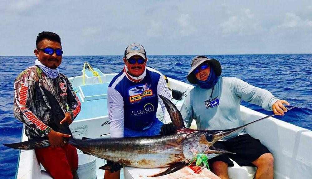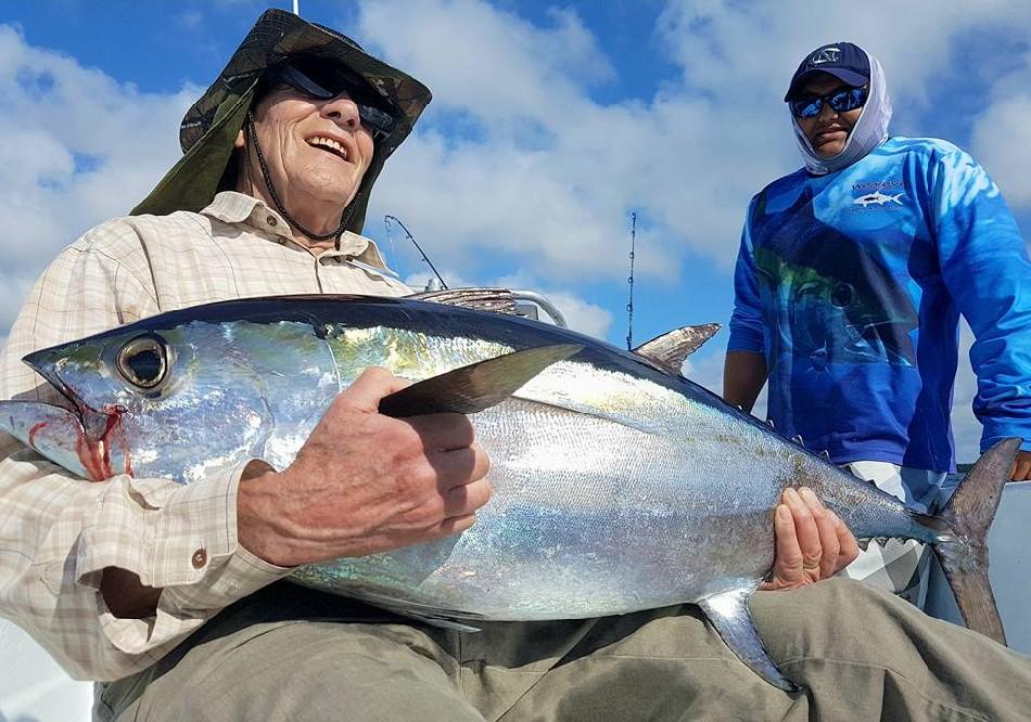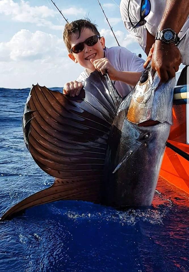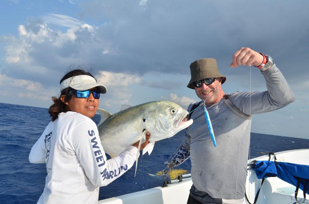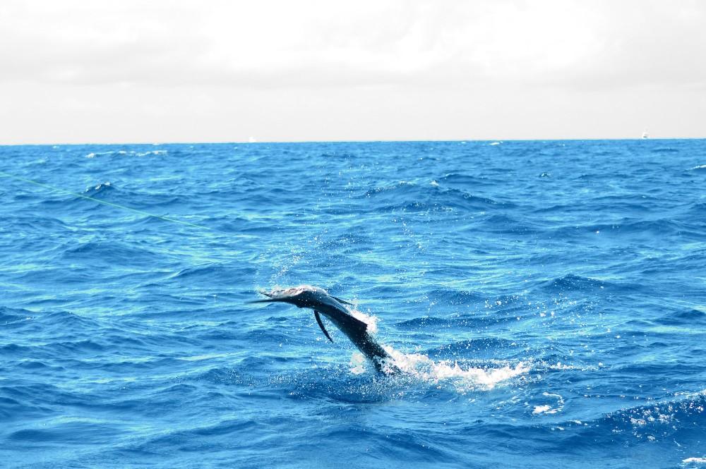 Vanaf maart tm juli kun je hier ook regelmatig zeilvissen tegenkomen, waarop dan ook vaak de focus ligt bij de lokale vissers, maar vergeet ook vooral niet de marlijn, dorado, en zwartvin tonijn die in deze periode ook hun piekmoment hebben. Dat kan zowel trollend met kunstaas of natuurlijk aas maar soms ook zelfs op poppers of stickbaits. Voor de visserij hier geldt dat je voor het jiggen een 100 – 300 grams korte boothengel van 1.8 meter gebruikt met een molen uit de 5 a 6000 serie die snel is in het opdraaien (1 meter per slag minimaal) in combinatie met een 30 kilo dyneema lijn en 80-100 lbs fluo onderlijn. Voor het trollen gebruik je een 20-30 lbs boothengel met dito molen als voor het jiggen en voor het popperen een 2,4 tot 2,7 meter lange popper hengel van 100 tot 150 gram. Je kan hier overigens ook je hengelmateriaal huren en dat kost 30 euro per persoon per dag waarbij verloren gegaan (kunst)aas vergoed dient te worden.