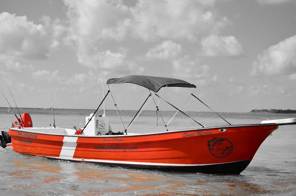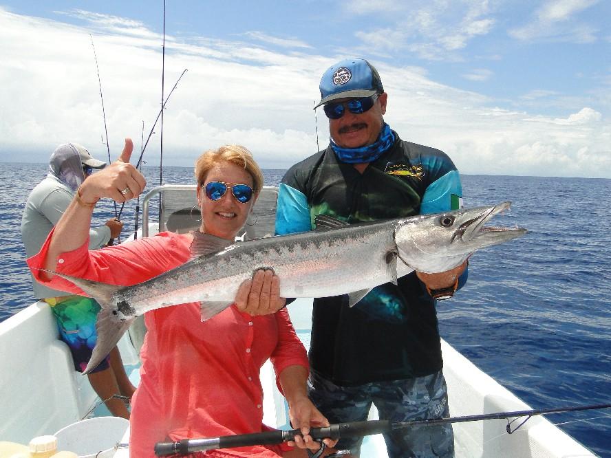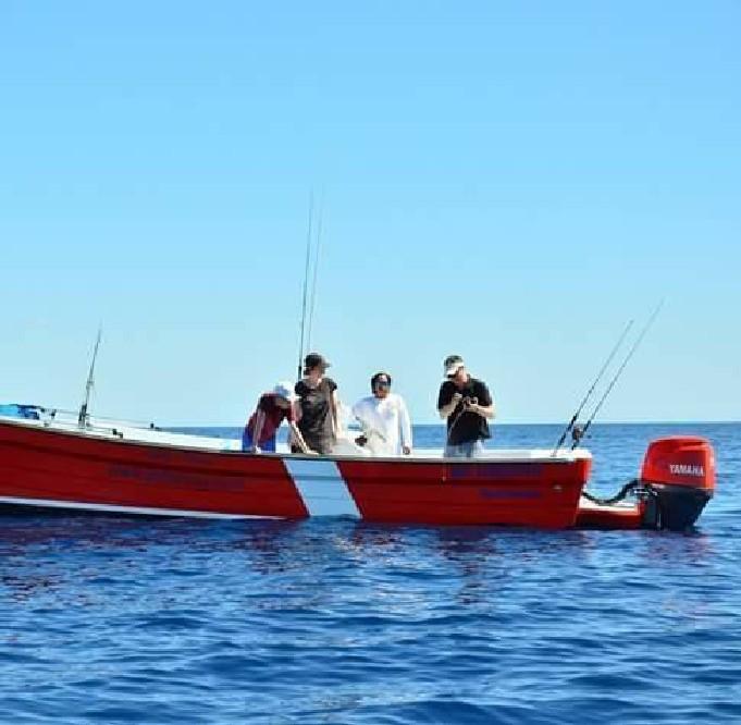 Voor het vissen maken we gebruik van een panga van ruim 7 meter lang. Dat is een lichte open boot met een neerklapbaar zonnedak voorzien van een 175 PK motor om comfortabel en snel op de gewenste visstekken te komen. De boot is voorzien van alle benodigde veiligheidsapparatuur en vergunningen. Jeremias Luna is een van de lokale kapiteins en is bekend om zijn goede vangsten en kennis van het lokale water. Hij neemt je mee naar de beste stekken op jacht naar de grote amberjacks, groupers, barracuda’s, zeilvis, tonijn etc en de mooiste herinneringen. Deze stekken liggen op korte afstand tot maximaal 30 minuten varen. Hier is de drop off waar de vissen zich ophouden en waar het water naar grote diepte reikt. Precies op deze rand komen de verschillende zeestromen bij elkaar en is veel voedsel beschikbaar en zijn dus ook de (grote) vissen te vinden.