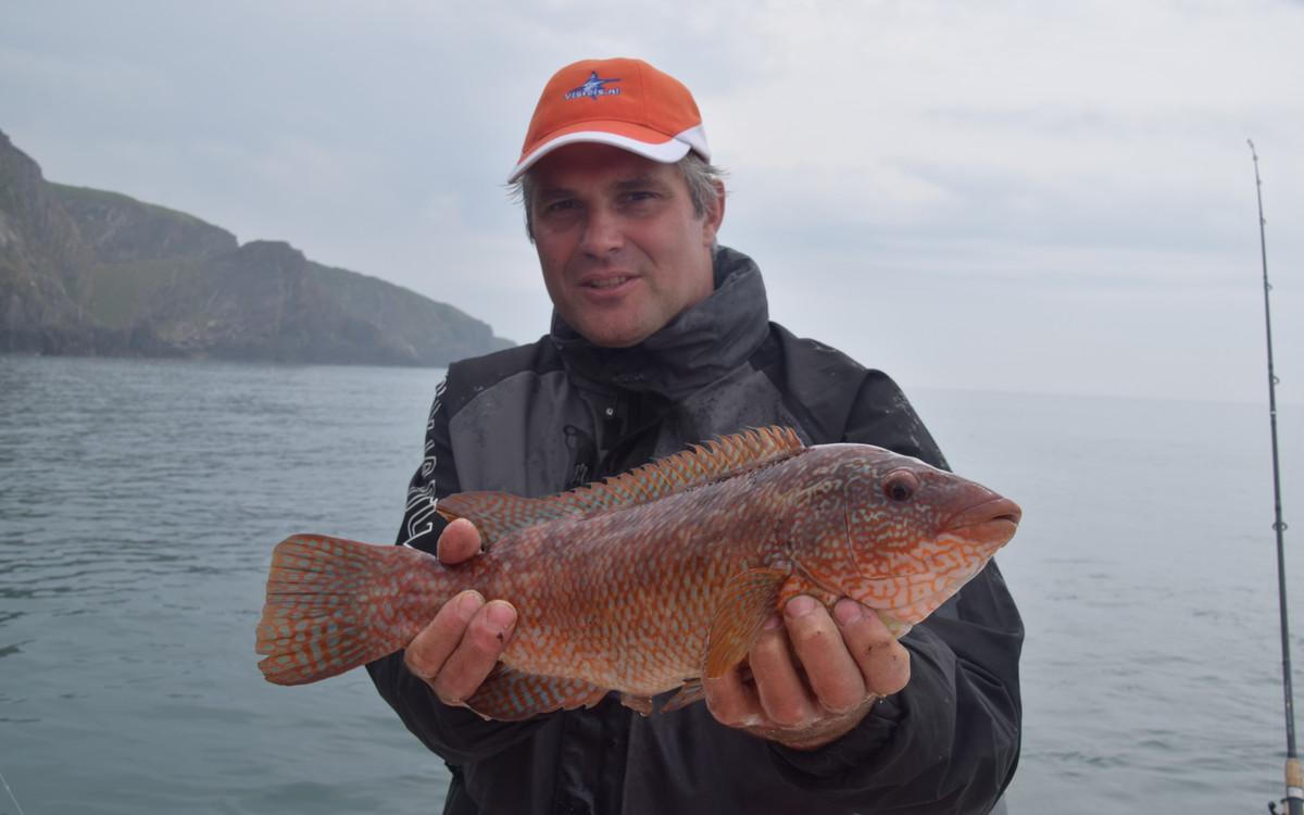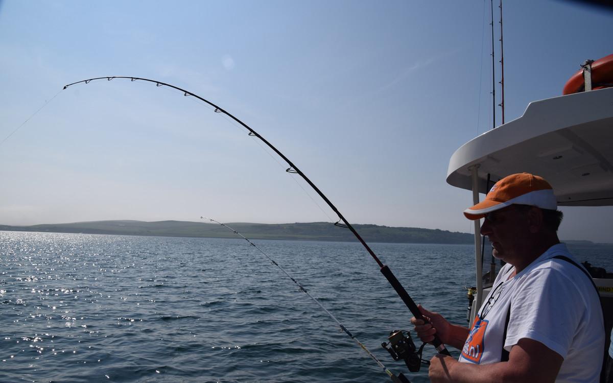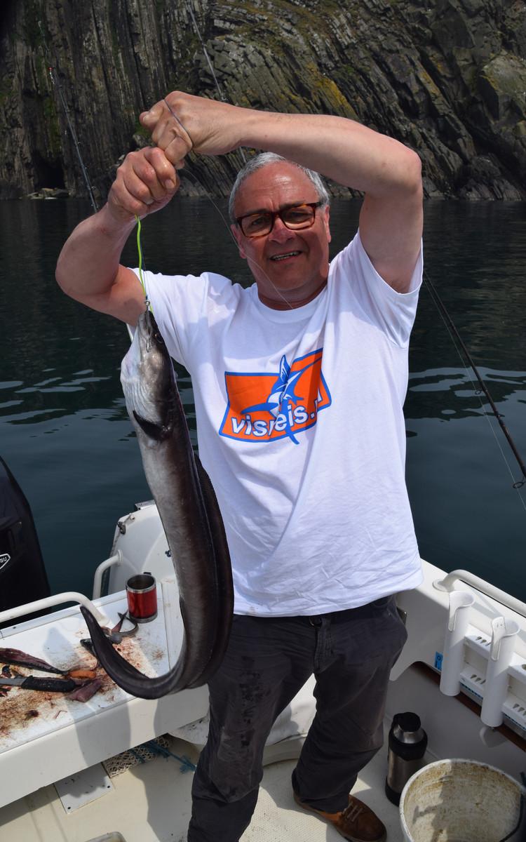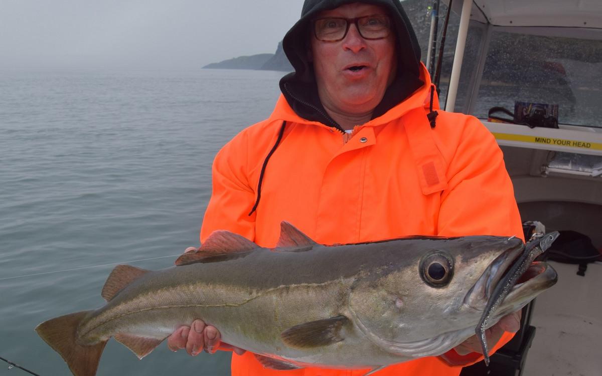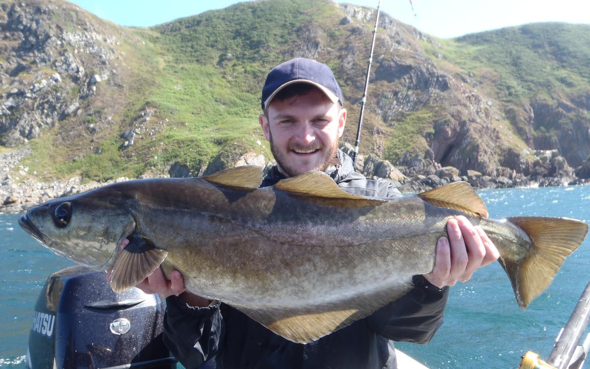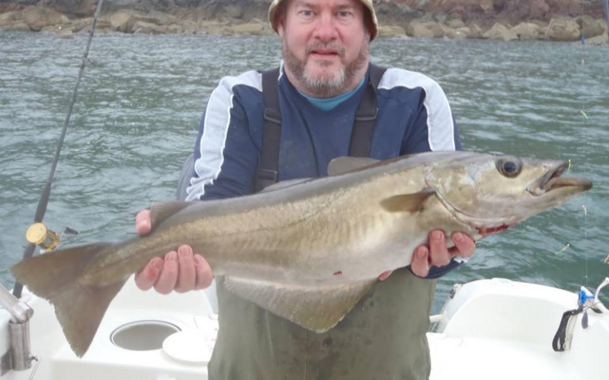 POLLAK Het vissen op pollak vindt plaats op slechts enkele meters vanaf de kliffen waardoor je hier (bijna) altijd beschut kunt vissen en er praktisch geen dagen uitvallen. Een typische dag begint met het vangen van makrelen om voldoende aas aan boord te hebben. Daarna wordt overgeschakeld op de garnalen paternoster om daarmee verse zandaal te vangen. Deze wordt als levend aas voor de pollak gebruikt. De keuze is nu aan jou om met een dobber of middels free-linen te gaan vissen op pollak. een gemiddelde dag brengt op de boot zo’n 100 + pollak voort dus het blijft werken met gemiddelde exemplaren tussen 2,5 en 5 kilo en uitschieters naar 8 a 9 kilo. deze vissen geven je een fantastisch gevecht en doen voor niets onder voor collega koolvis. De vreugde wordt verder verhoogd door gebruik te maken van een zeebaarshengel die nog meer actie oplevert. Op dezelfde locaties wordt ook koolvis, conger en lipvis gevangen. Vanzelfsprekend wordt de conger met een zwaardere set up bevist waar bij 20-30 lbs raadzaam is.