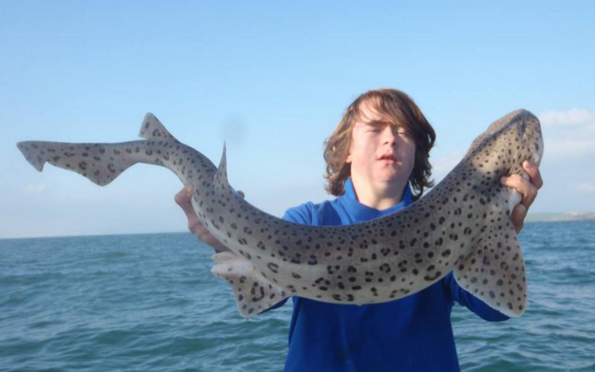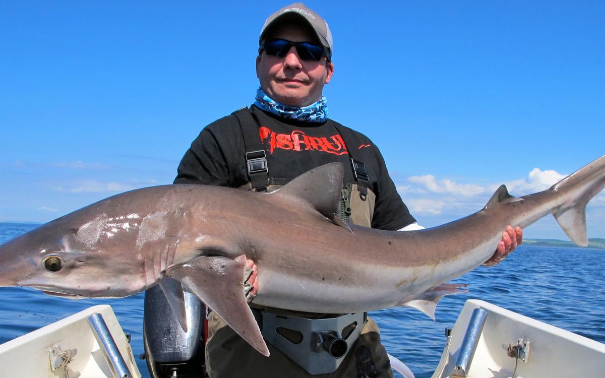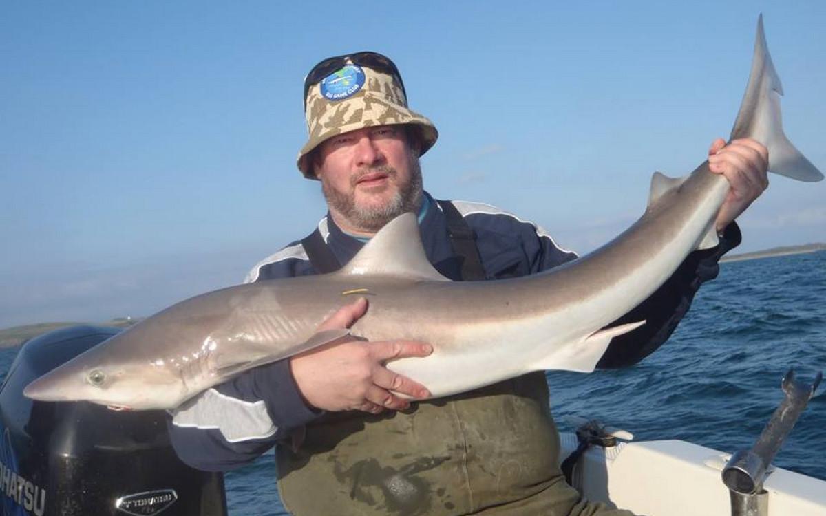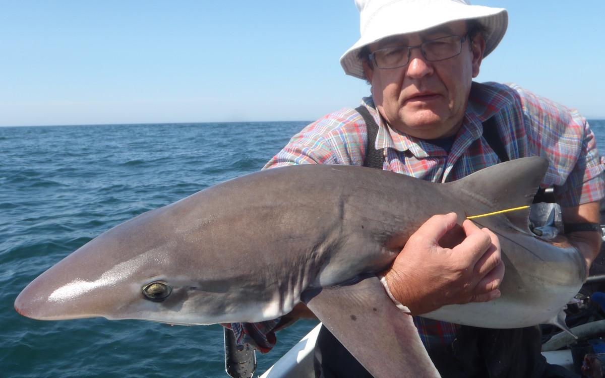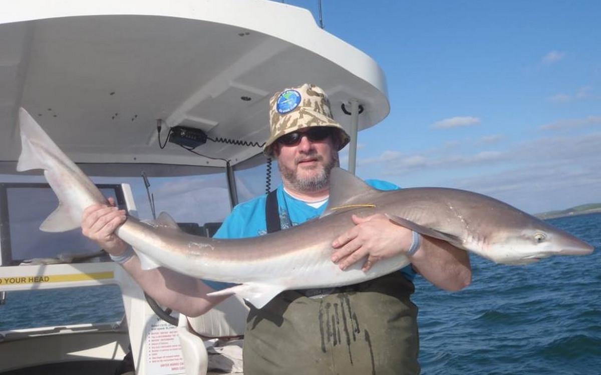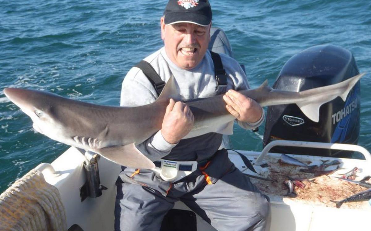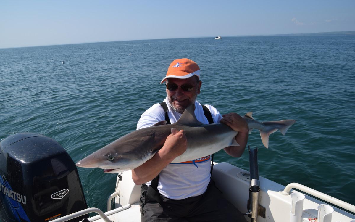 RUWE HAAI Voor de reguliere visserij op haai, rog en pollak kan je met de juiste weersomstandigheden terecht van mei tm oktober. maar een vand e belangrijkste soorten waar men zich hier op richt is toch wel de ruwe haai. Er zijn al weken geweest waarin men meer dan 150 ruwe haaien per boot heeft gevangen. Vroeg in het seizoen wordt er gericht gevist op exemplaren van rond de 10 a 15 kilo ruwe haai in slechts 10 meter diepte met lichte hengels van 6 tot 12 lbs. Dit is werkelijk een super spectaculaire visserij. Maar ook met de dobber wordt er gericht op ruwe haai gevist. In de zomermaanden is de visserij iets verder uit de kust om de grotere exemplaren te lokaliseren van rond de 15 a 20 kilo. Het gemiddelde aantal per dag ligt dan rond de 10 a 12 stuks per boot. In september en oktober worden de aantallen wat lager maar het formaat loopt op tot 25 a 30 kilo. Tijdens het vissen vissen op ruwe haai worden regelmatig bull huss, gladde haai, doornhaai en ook verschillende rogsoorten gevangen. Dit is een zeer welkome bijvangst waarbij de meeste vangsten simpelweg met makreel als aas worden gedaan.