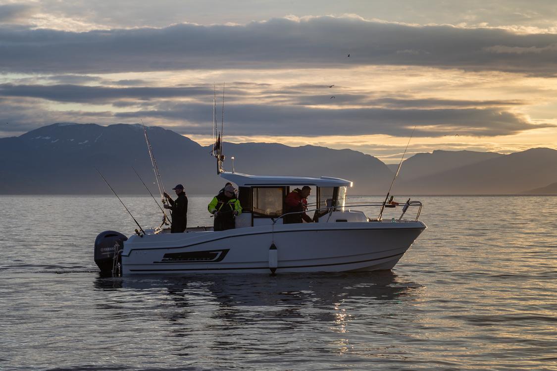 De 24 (!) voet (7,2 meter) lange Jeanneau Marlin met een 150 PK Yamaha motor met kajuit in het midden en walkaround, GPS en fishfinder. Van deze boten zijn 14 exemplaren beschikbaar.