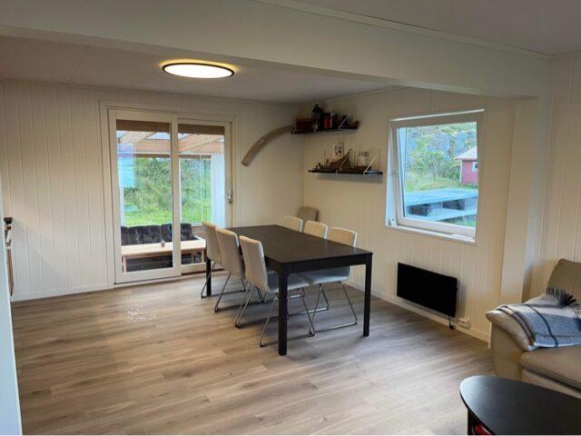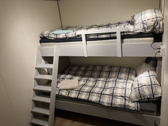 Aan de lange zijde van het hoofdgebouw zijn twee vierpersoonsappartementen met allebei een aparte ingang gebouwd. De woningen zijn compact maar slim ingedeeld. Op 34 m2 heb je plek voor vier personen voor een tv waar je verbinding mee kunt maken via chromecast. Je hebt een kleine sauna, WC en douche. De keuken is voorzien met alles wat je nodig hebt en een keukentafel waar je kan eten en natuurlijk je spullen kan optuigen om te vissen. Er zijn twee slaapkamers waarin elk een ruim Noors stapelbed is geplaatst.