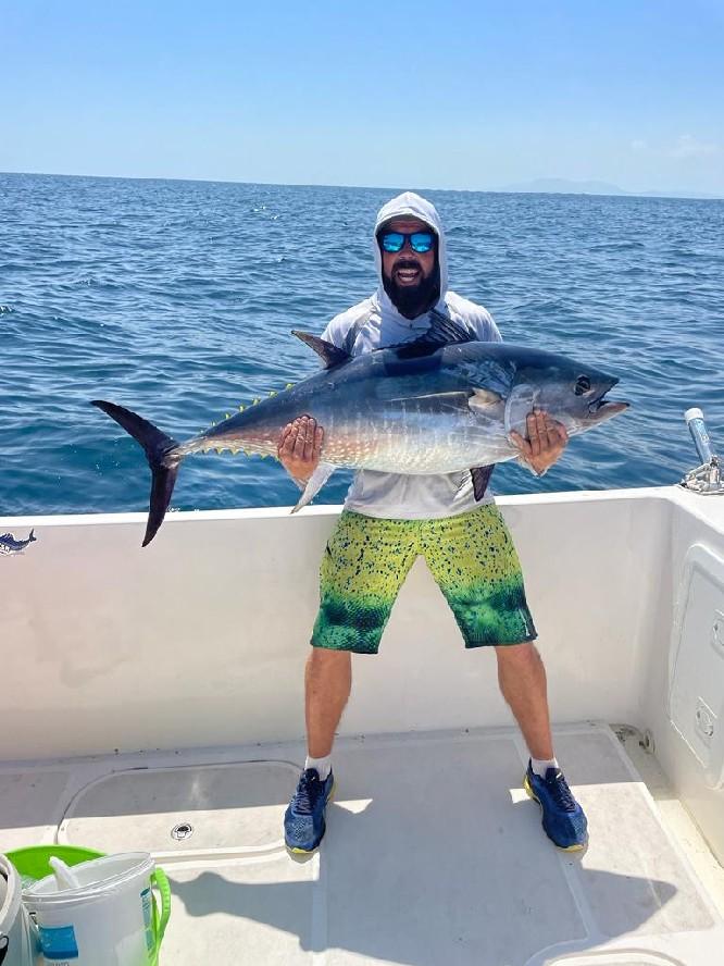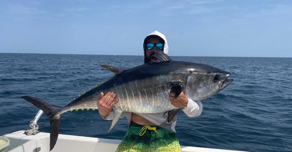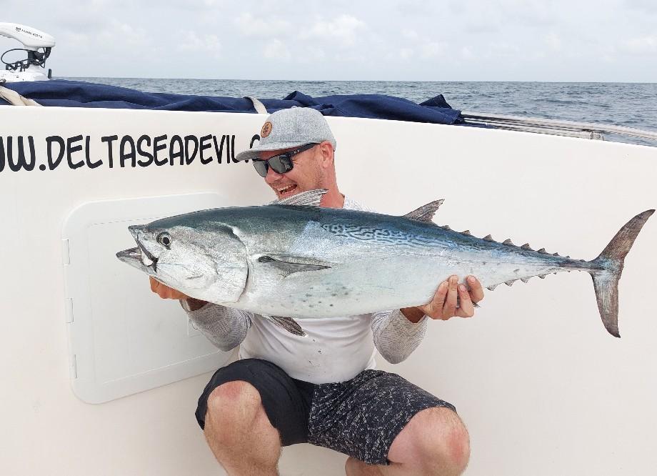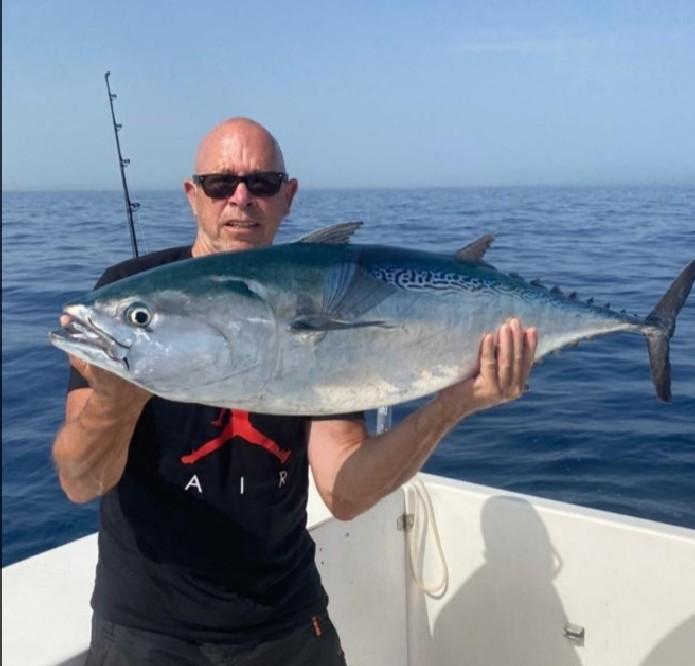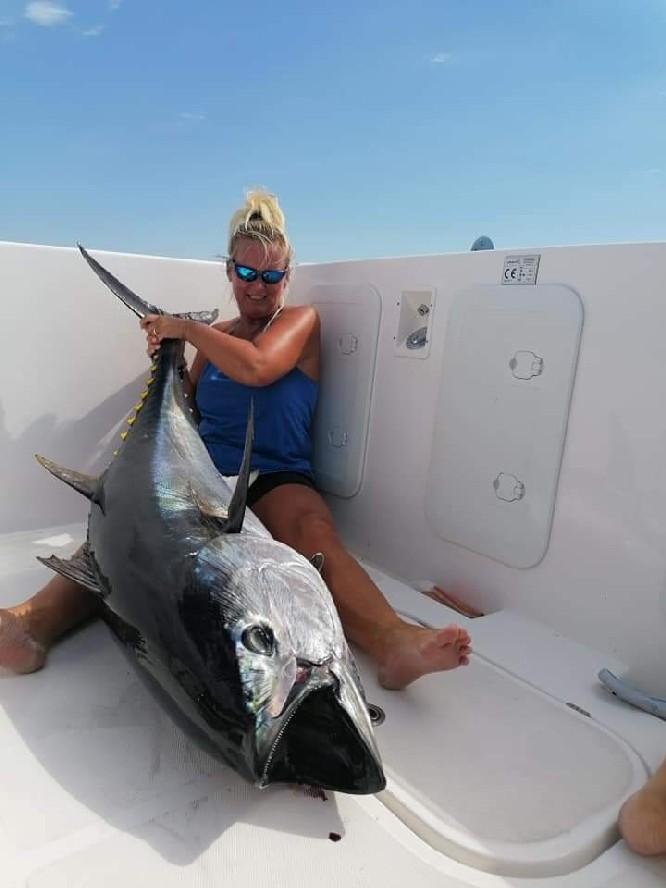 Juli, augustus Geweldige maanden om op tonijn te vissen. De afgelopen jaren vingen we gemiddeld 5 vissen per dag.