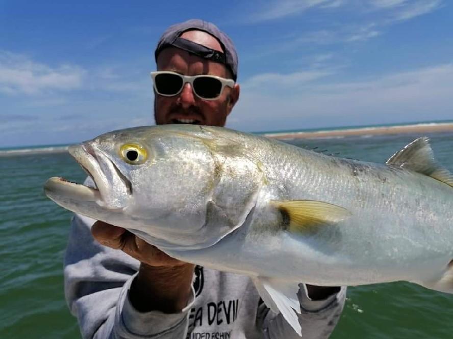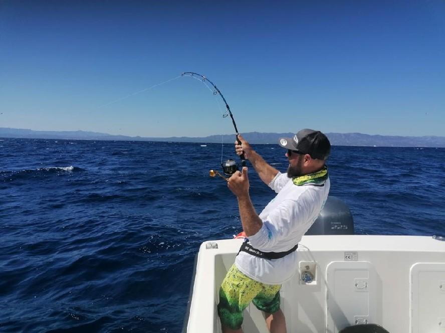 Daarnaast vissen we ook met levend aas als makreel, horsmakreel, bonito of skipjack. Dit werkt heel goed op zeebaars, leervis, bluefish (blauwbaars) en natuurlijk ook op tonijn. Deze visserij kan zowel met een dobber of met free linen. Tijdens deze visserij werpen we ook met kunstaas wat additioneel aast dat goudbrasem (gilthead), witte tonijn (albacore) en gestreepte tonijn (skipjack) kan opleveren. Zeebrasem, barracuda en amberjack zijn sporadische bijvangsten die soms ook vooromen. Al deze vissen zijn geduchte vechtersbazen die je flink aan het werk gaan zetten!