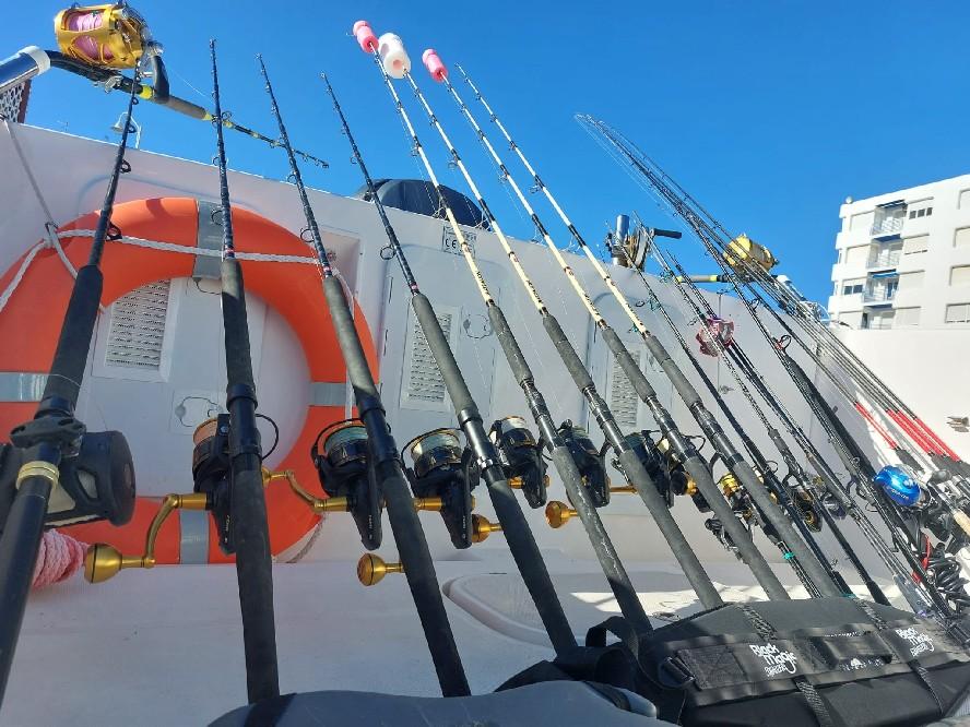 Daarnaast zijn er twee elektronische reels om snel levend aas en vis voor chumming op diepte te vangen. En tenslotte hebben we Sa quiver (feeder)sets voor het voor ankervissen op zeebaars. Zoals je kan zien; voor alle soorten visserij is er een perfecte set up en hoef je dus zelf niets mee te nemen. Ook qua kunstaas is hier een ruim assortiment aanwezig.