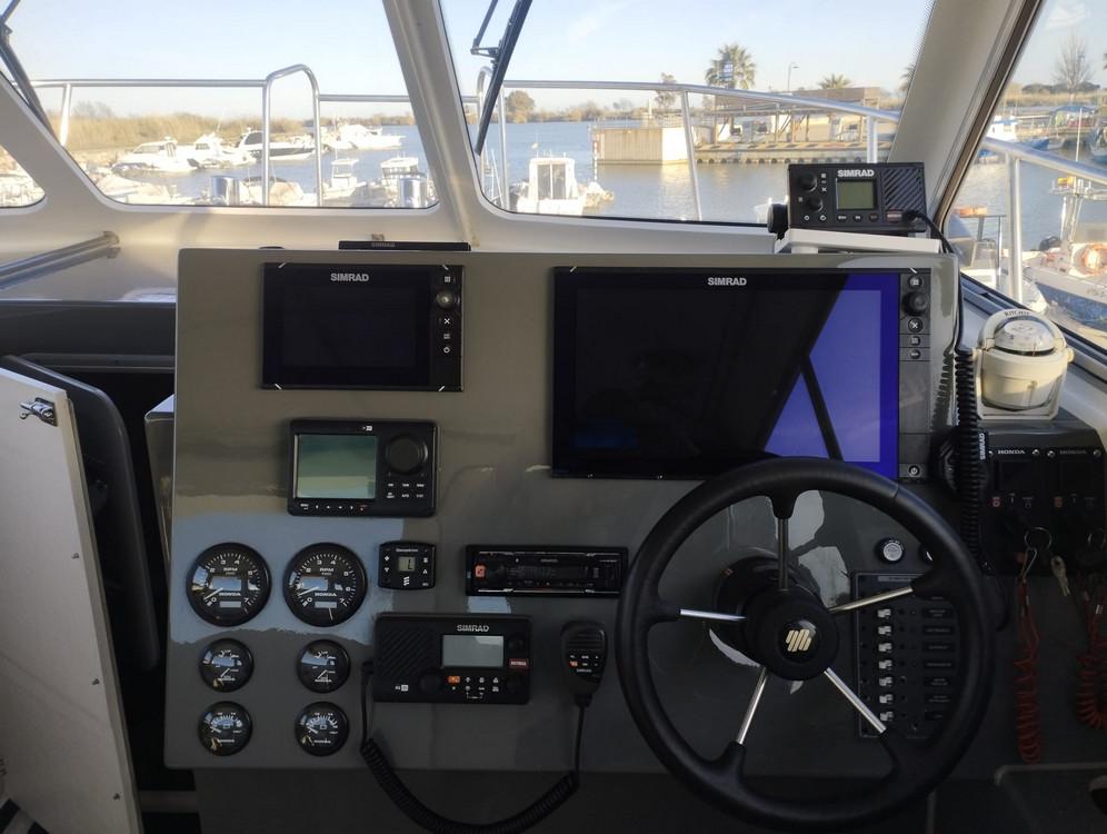 Na jaren van gidsen in de Ebro-delta hebben we de beste boot gevonden die alles heeft voor de plaatselijke omstandigheden. Deze snelle en zeer stabiele Cheetah catamaran (9.7 x 3.7 m) hebben wij uitgerust met 2 x 250 pk Honda motoren. Hij is voorzien van een Simrad 16” & 7”, radar, autopilot en heeft een ruime kuip voor comfortabel vissen. De boot is zeer stabiel en veilig. Het voordeel is dat we dus ook bij meer wind gewoon uit kunnen varen! Binnen zijn er zitplaatsen voor 5 personen.