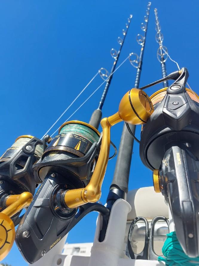Qua uitrusting gebruiken we meestal Penn. Voor het chummen gebruiken we Penn international 80 wide reels in combinatie met Höwk no limit bend butt stand up hengels. Daarnaast hebben we Penn slammer 10500 reels in combinatie met Penn monster bluefin 130lbs stand up freeline hengels. Of gebruik de 50 lbs stand up hengels met 50 lbs reels.